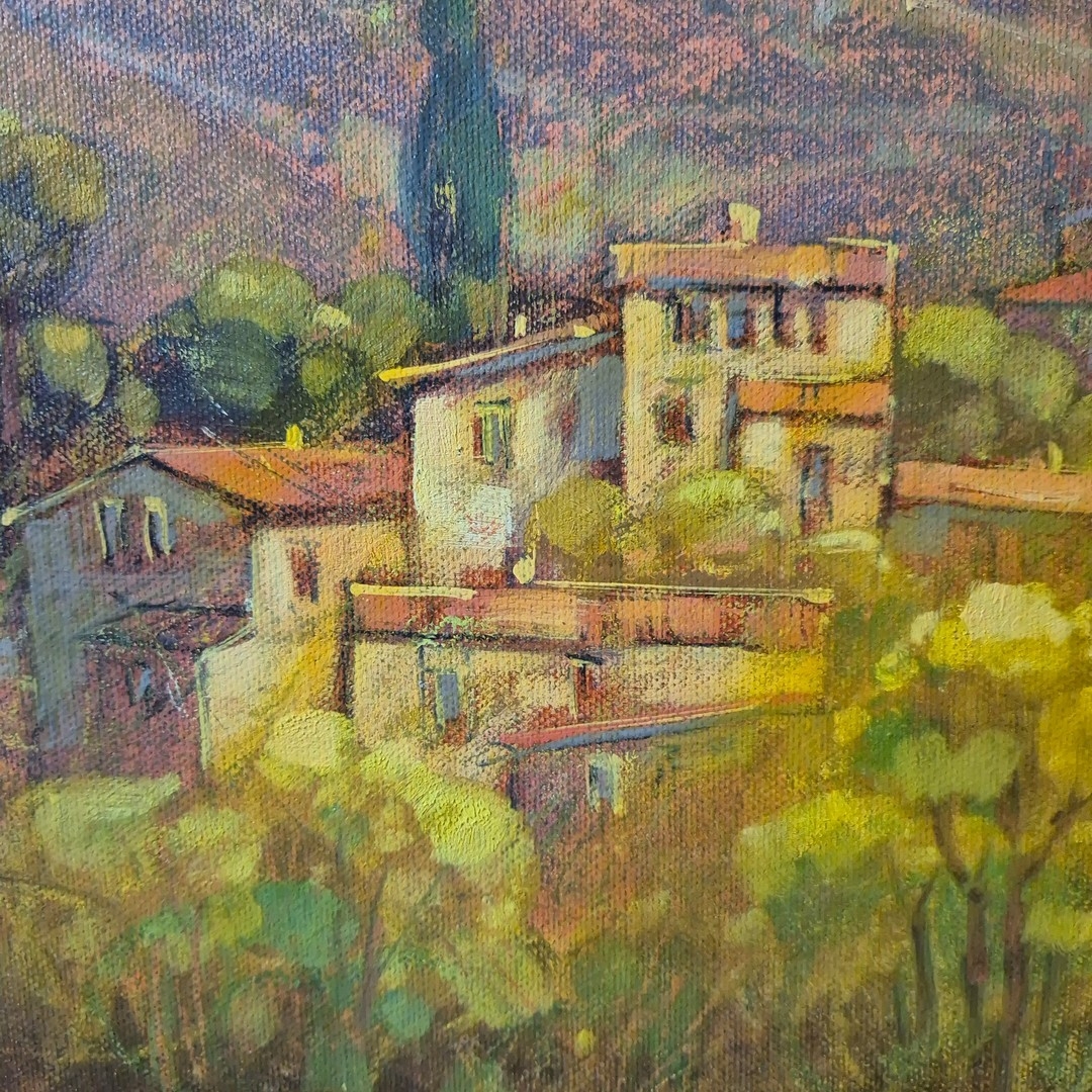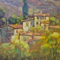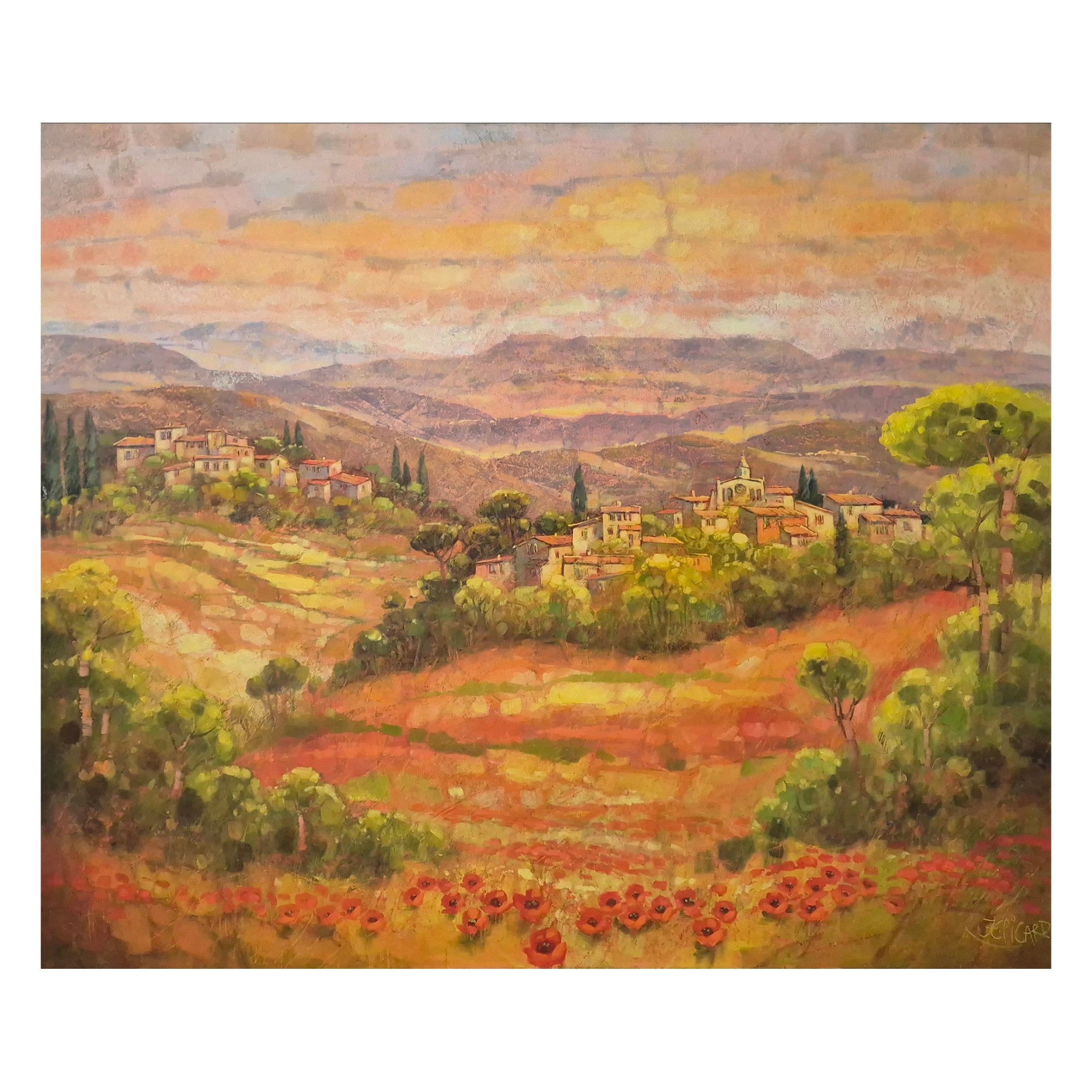 JEAN CLAUDE PICARD ( BORN 1940). VUE D'UN VILLAGE EN DIRECTION DU MONT SAINTE-VICTOIRE. Oil on Canvas, 100cms x 120cms, signed.