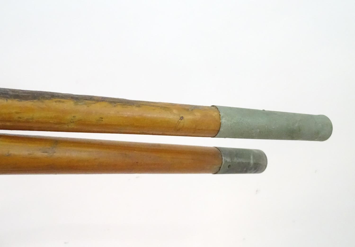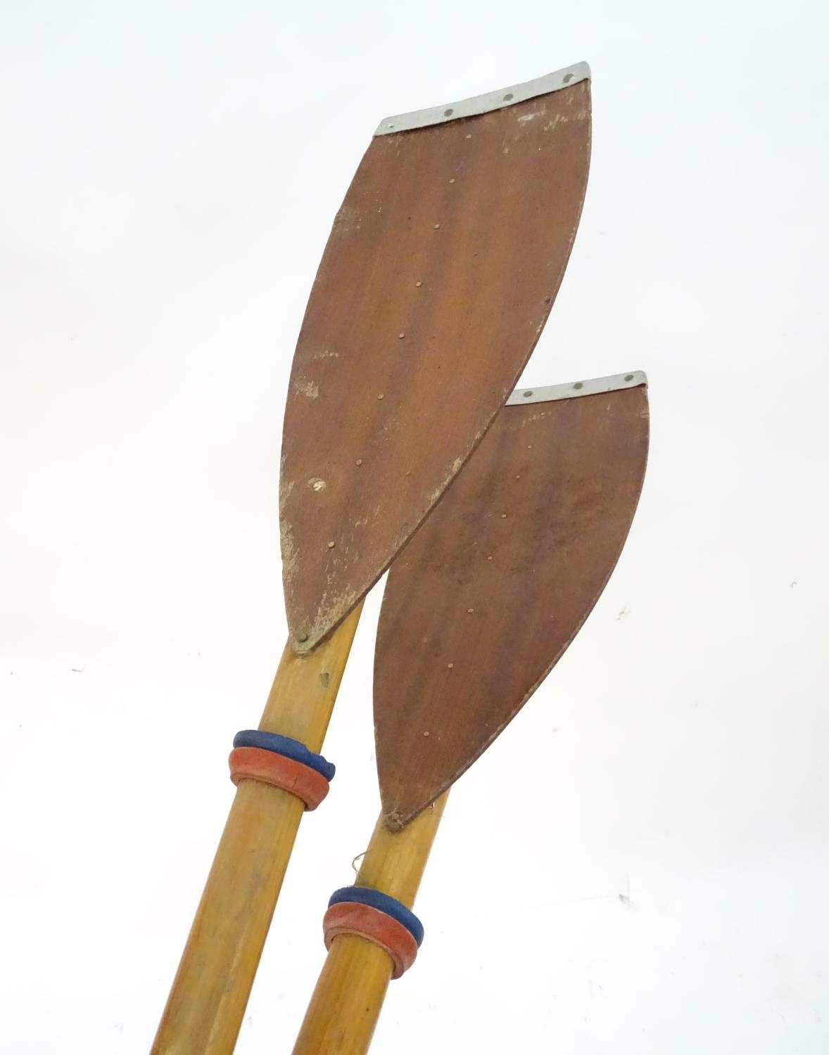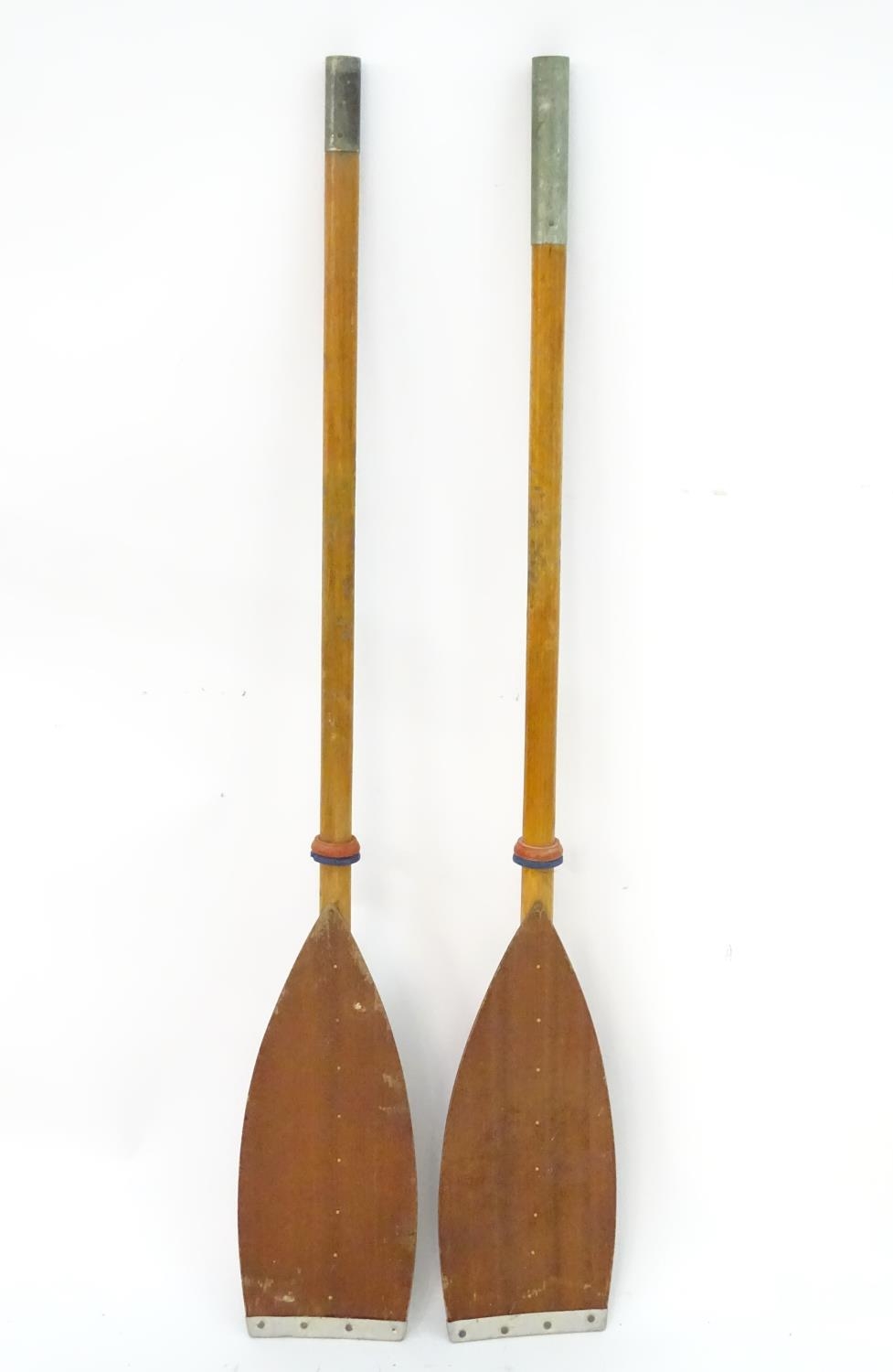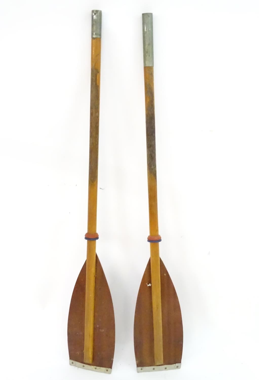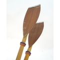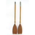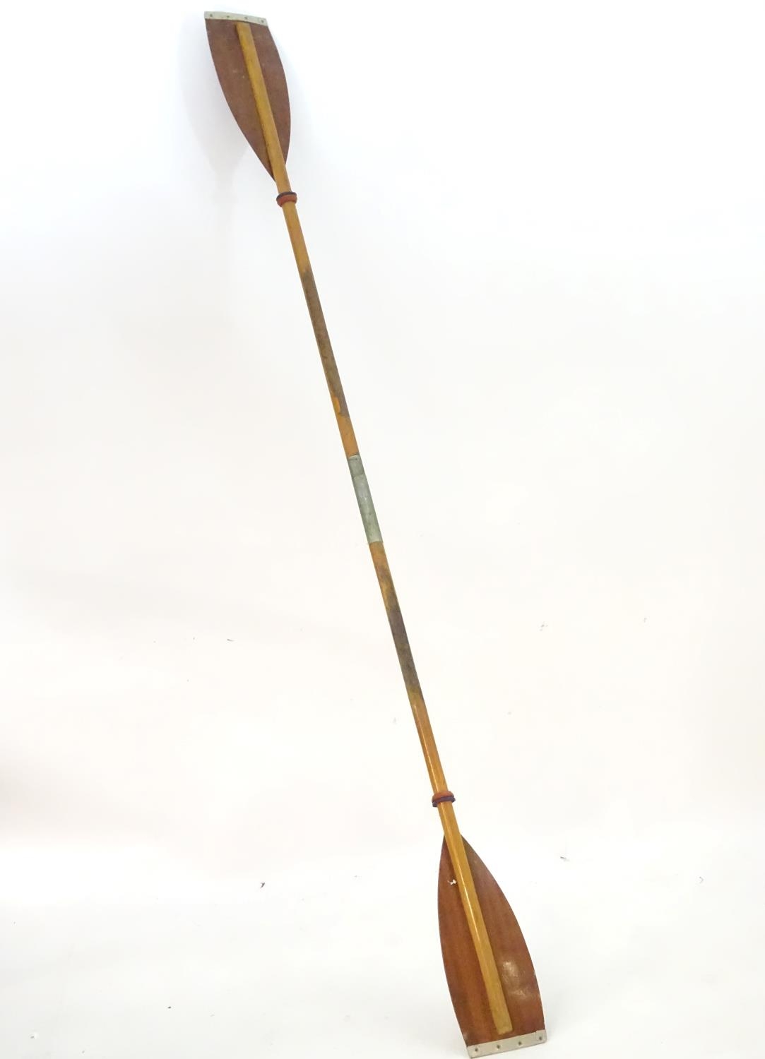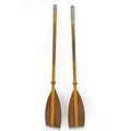 A two part wooden kayak paddle with protective end caps. Each approx. 49 1/2"