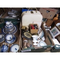 BOX OF MIXED CHINA AND METALWARE ETC
