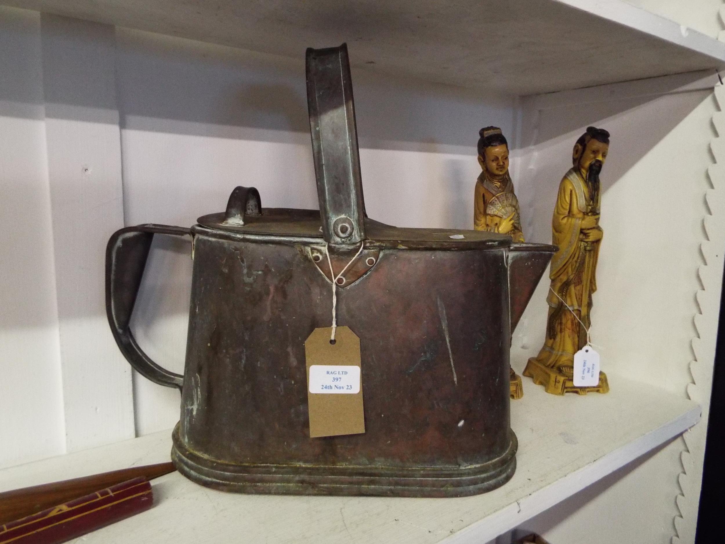 A vintage brass/copper water jug