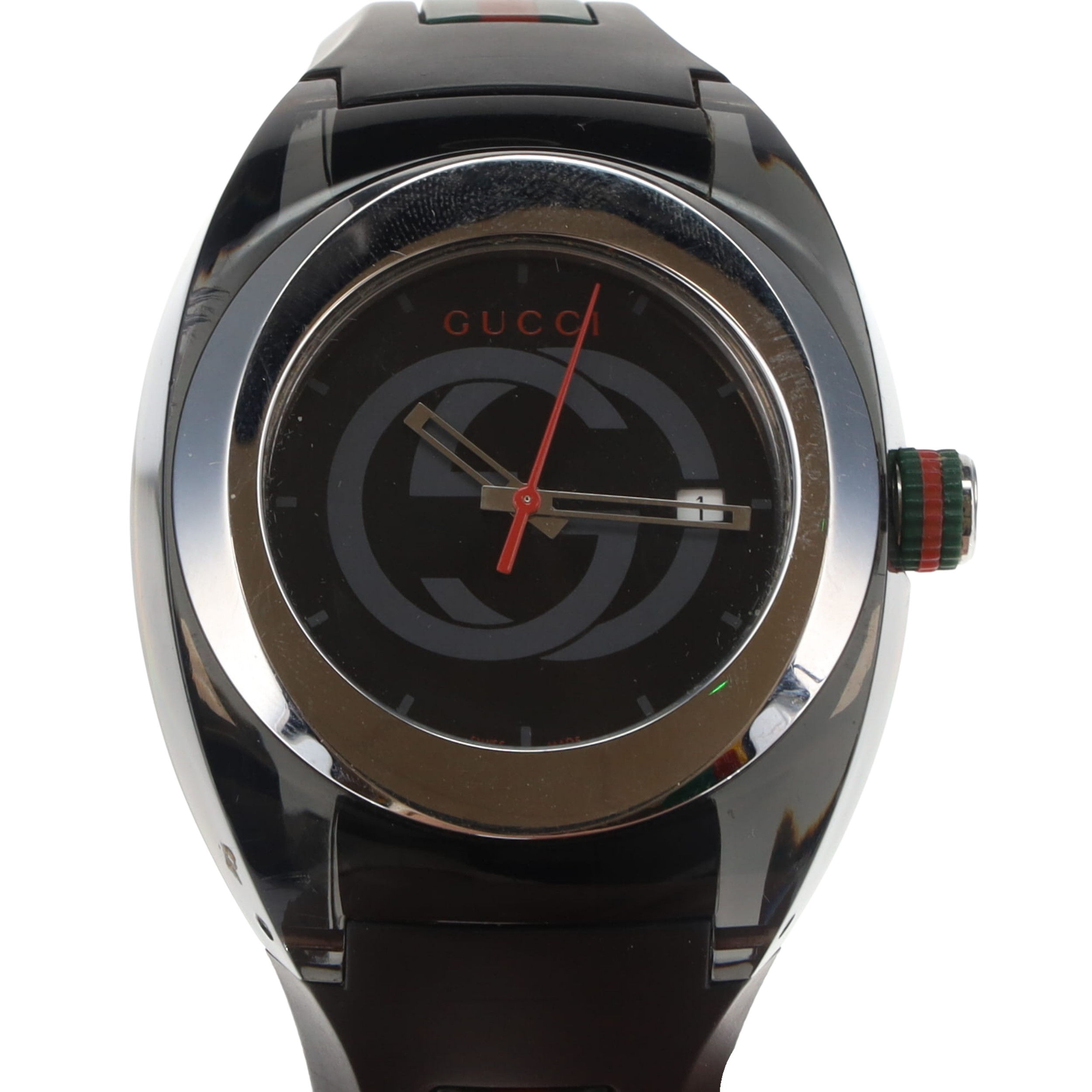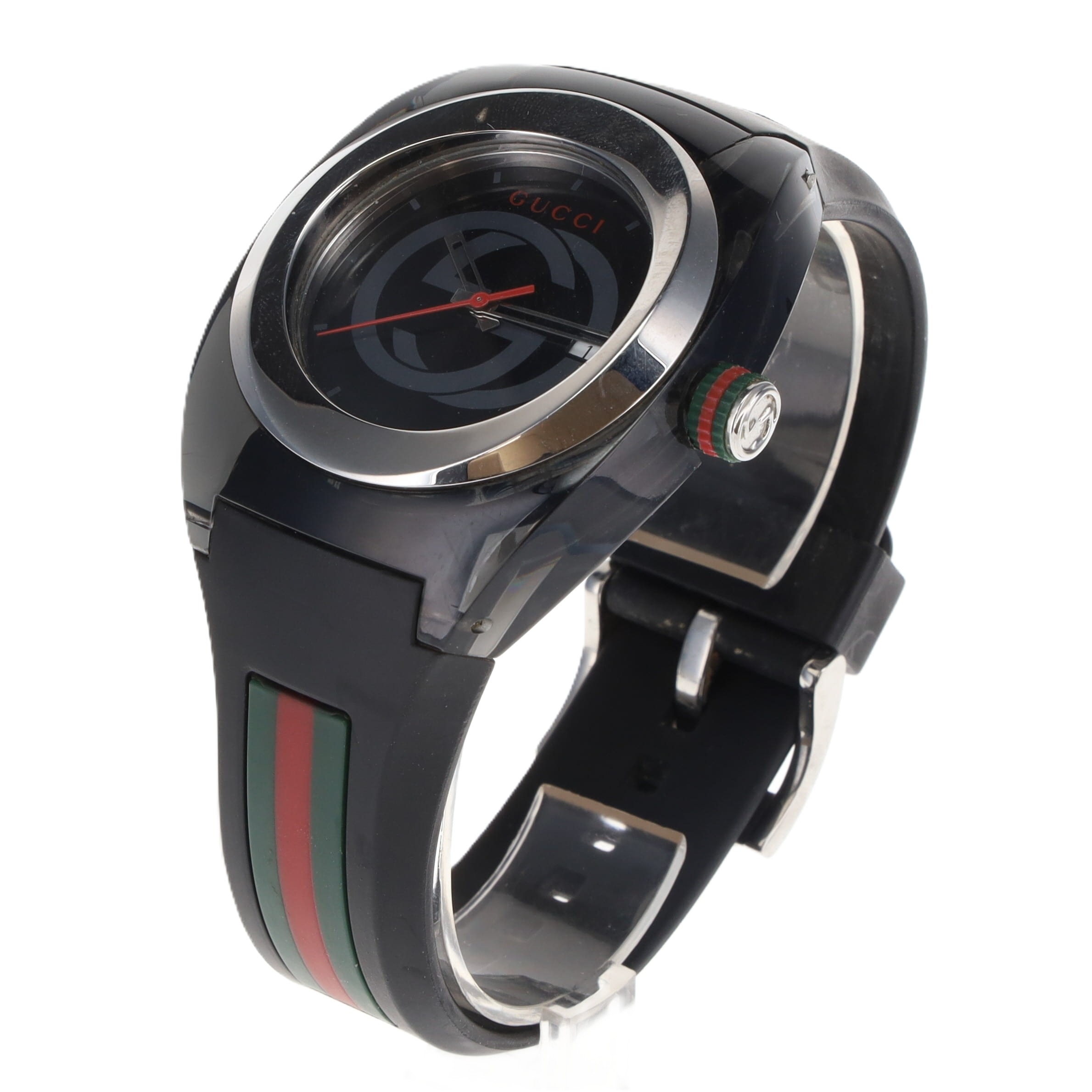 Gucci - Sync Watch. Watch Swiss made Quartz movement. Stainless Steel case and Rubber strap. Mineral crystal is in good condition. Watch is running at the time of listing. accompanied by its original box.