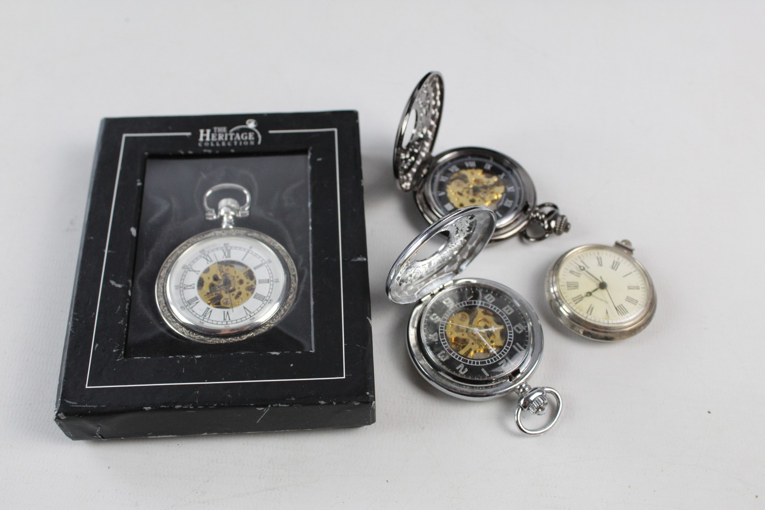 4 x Assorted Gents POCKET WATCHES Hand-Wind WORKING Inc. Skeleton Examples Etc