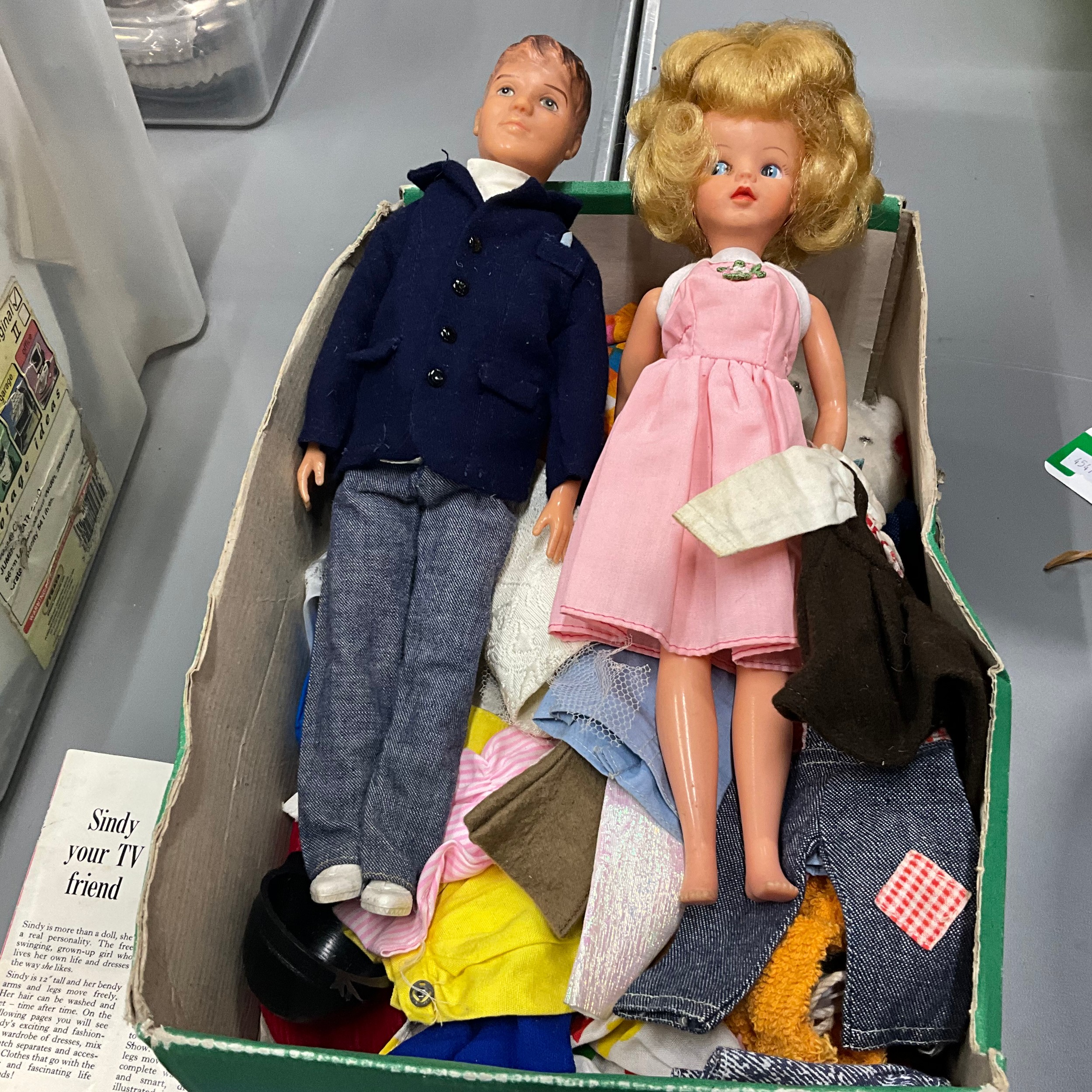 A collection of 2 Sindy dolls and large assortment of clothing.