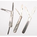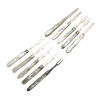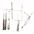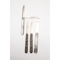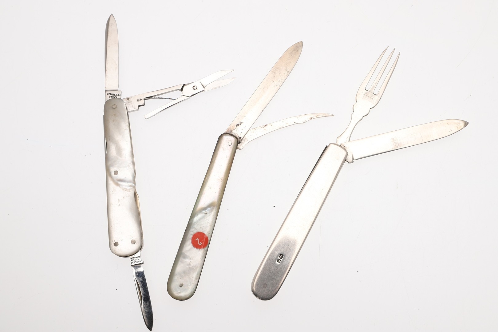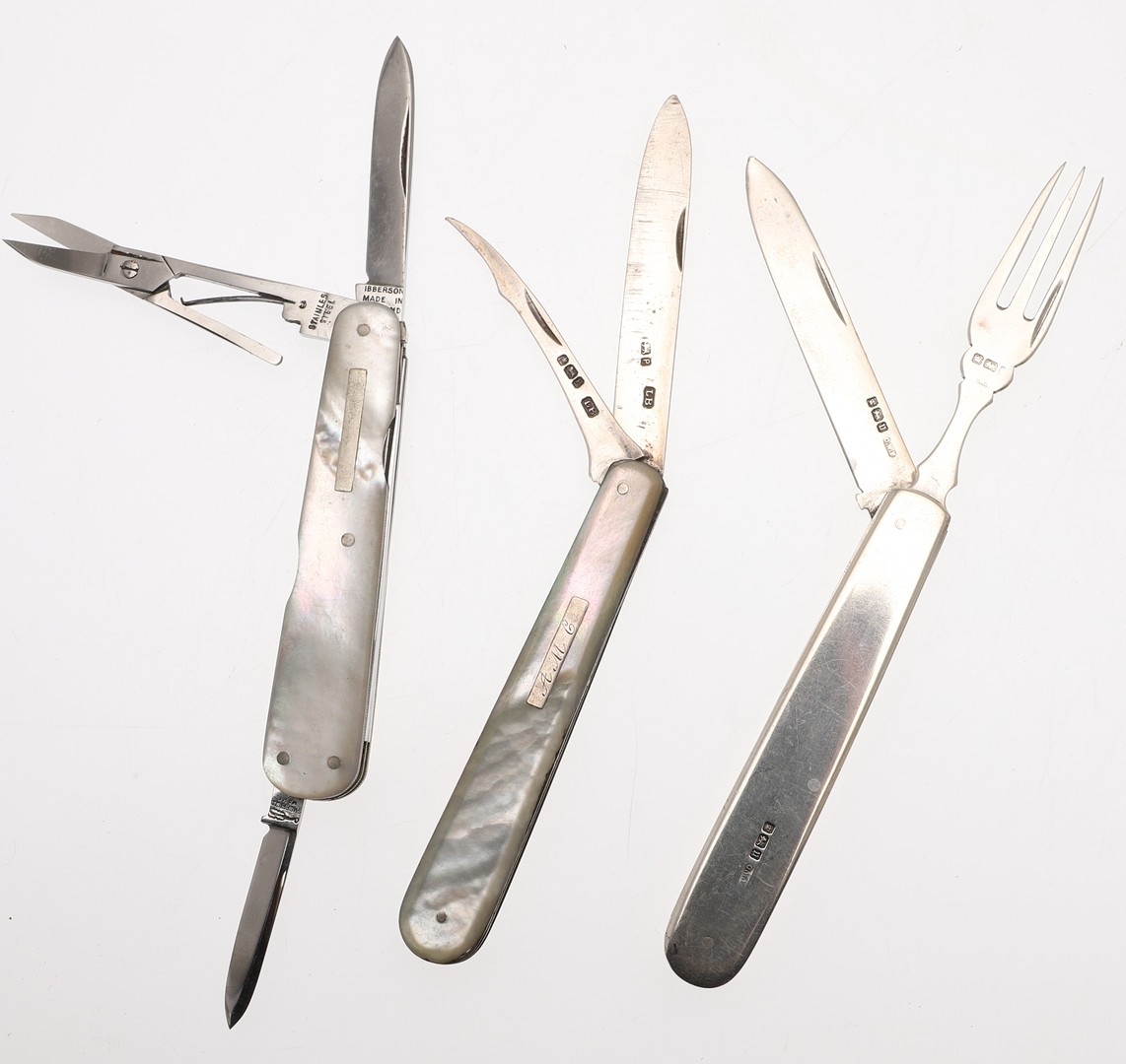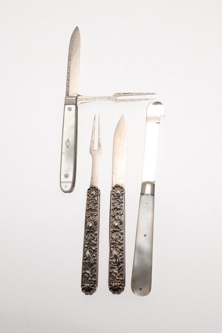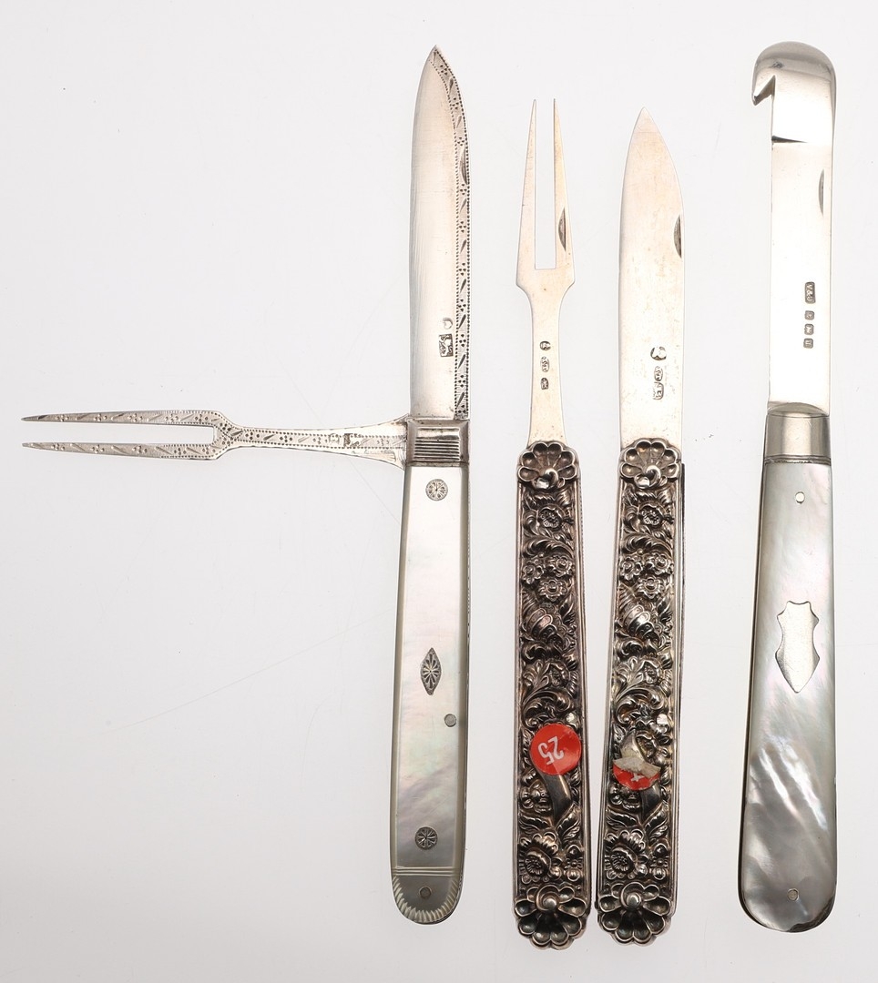 A GEORGE 111 SILVER COMBINED KNIFE AND FORK , A MATCHING KNIFE AND FORK C. 1820, THREE OTHERS, VARIOUS AND ONE WITH STEEL BLADES. three with silver handles.