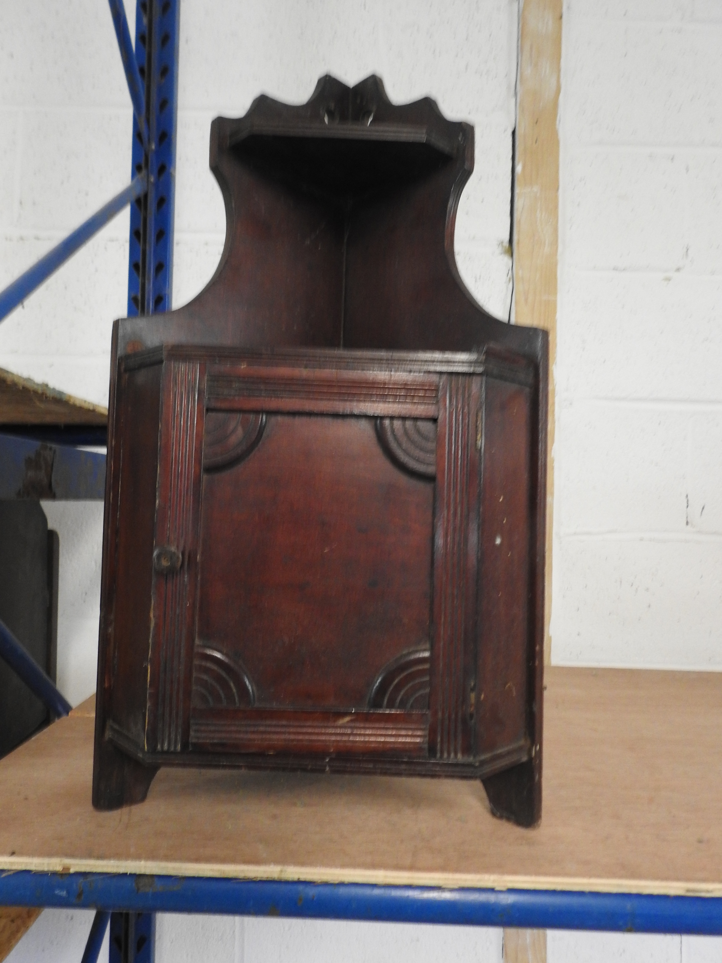 Mini corner wall cupboard, dark wood