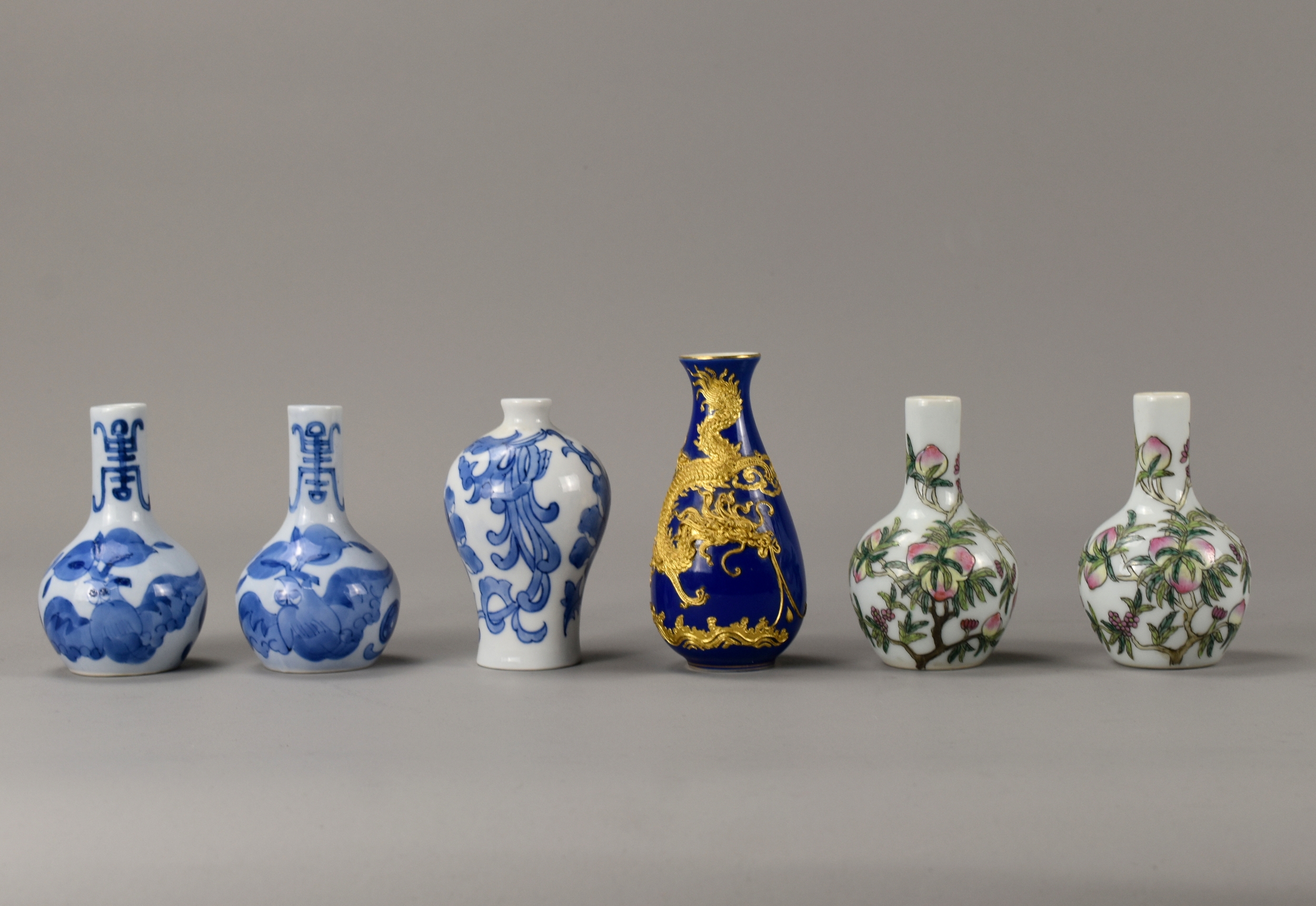 A collection of six Chinese porcelain miniature bottle vases.