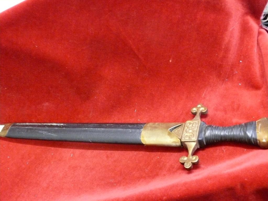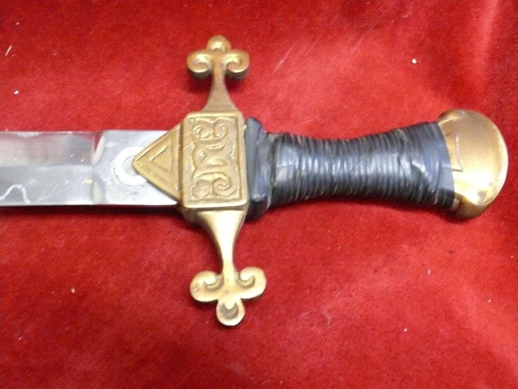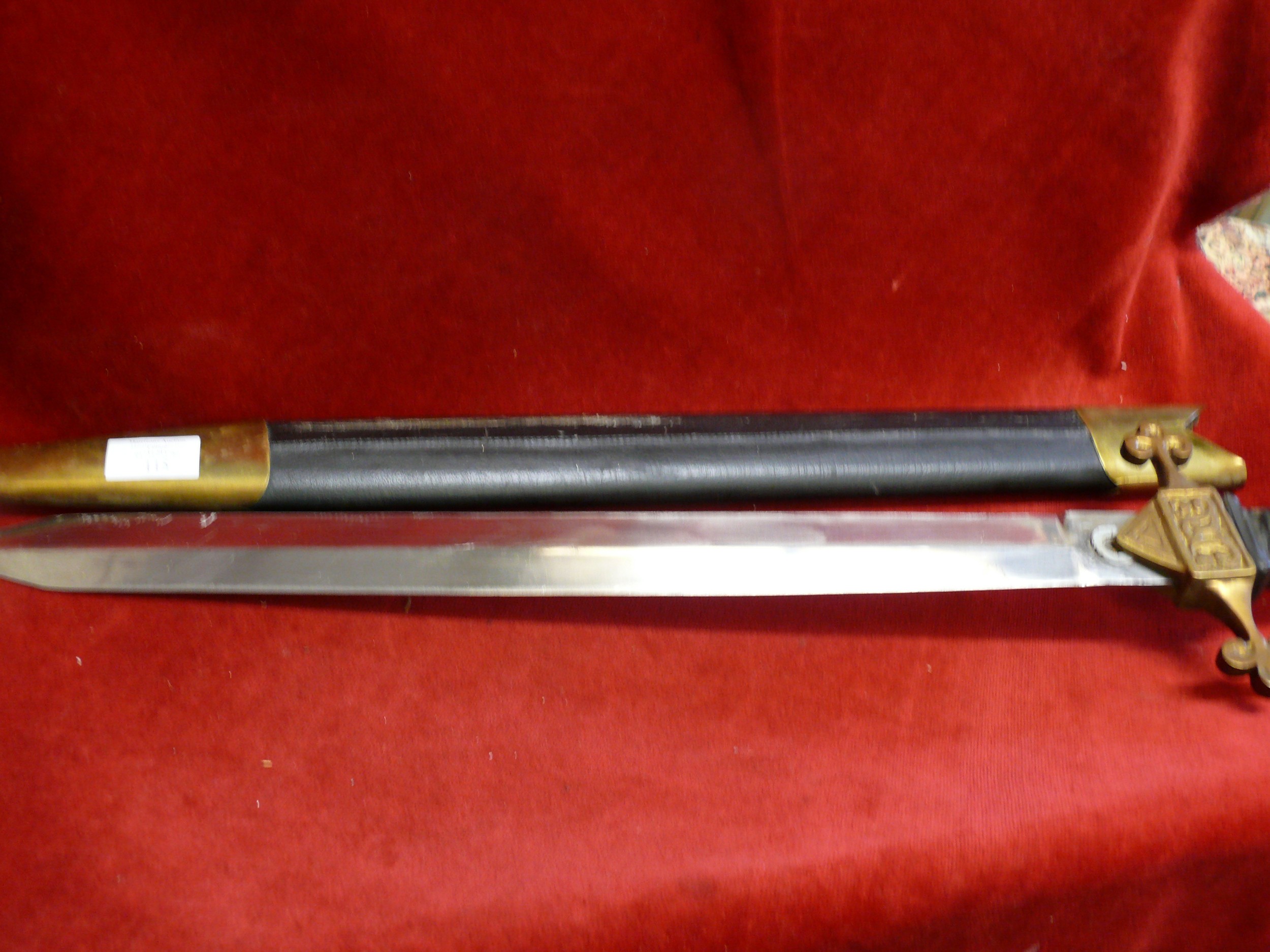 WELL MADE COPY OF ROMAN SWORD WITH BRONZE HILT AND NICELY MADE SCABARD, BEEN SLIGHTLY SHARPENED WITH GOOD QUALITY STEEL