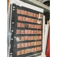 Page Of British 1854 Penny Red Stars Stamps