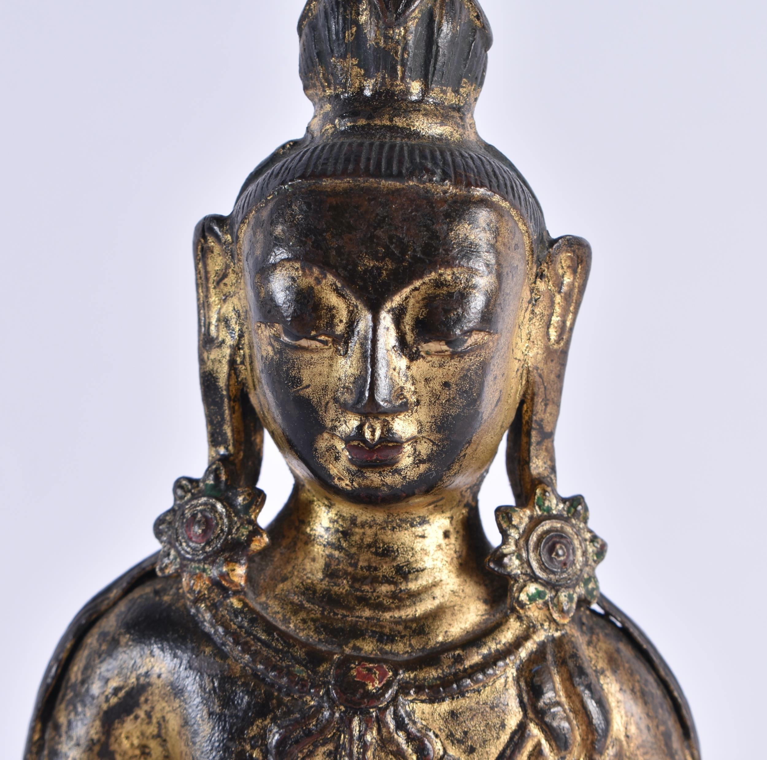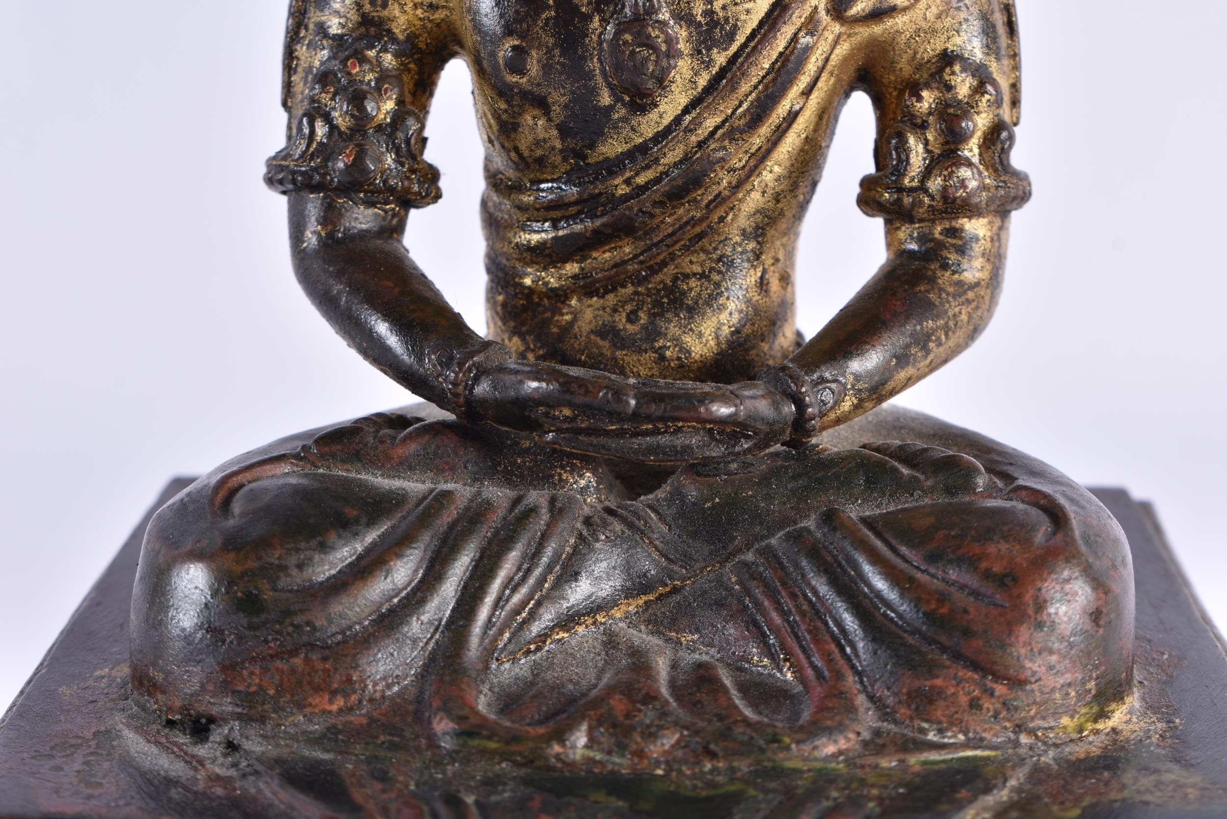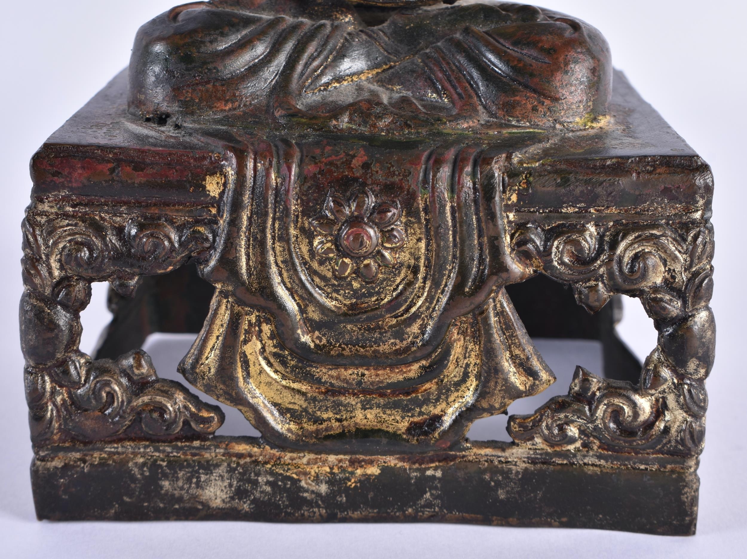 AN 18TH CENTURY CHINESE LACQUERED BRONZE FIGURE OF A BUDDHA Qianlong. 21 cm x 10 cm.