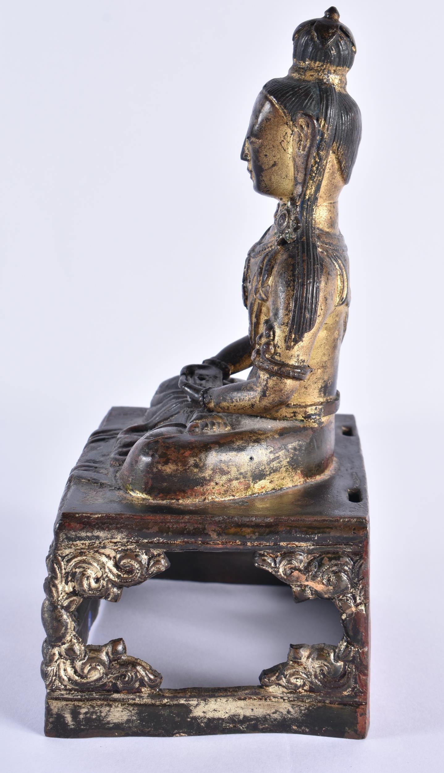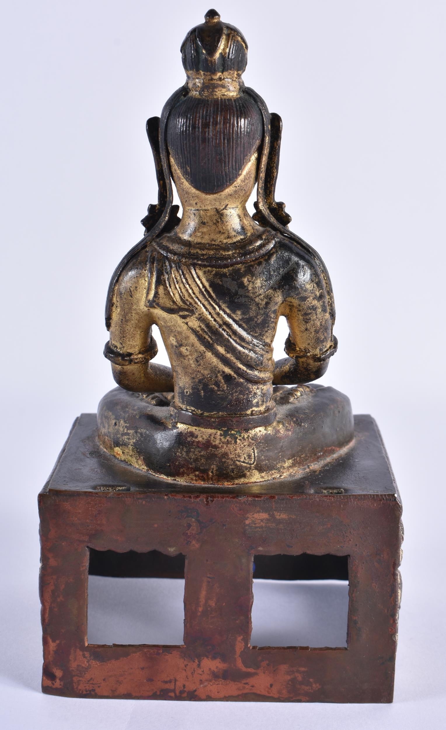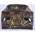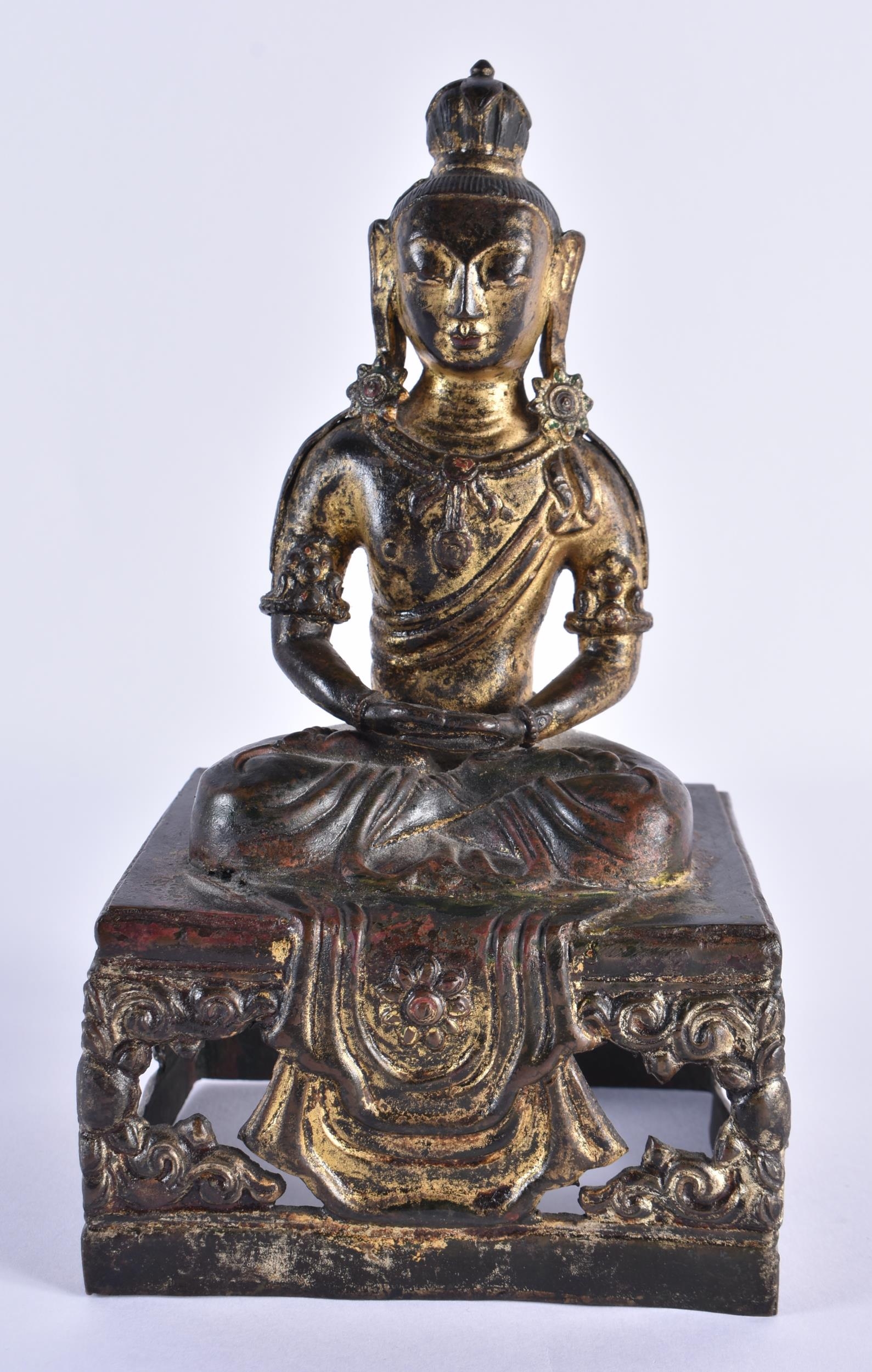 AN 18TH CENTURY CHINESE LACQUERED BRONZE FIGURE OF A BUDDHA Qianlong. 21 cm x 10 cm.