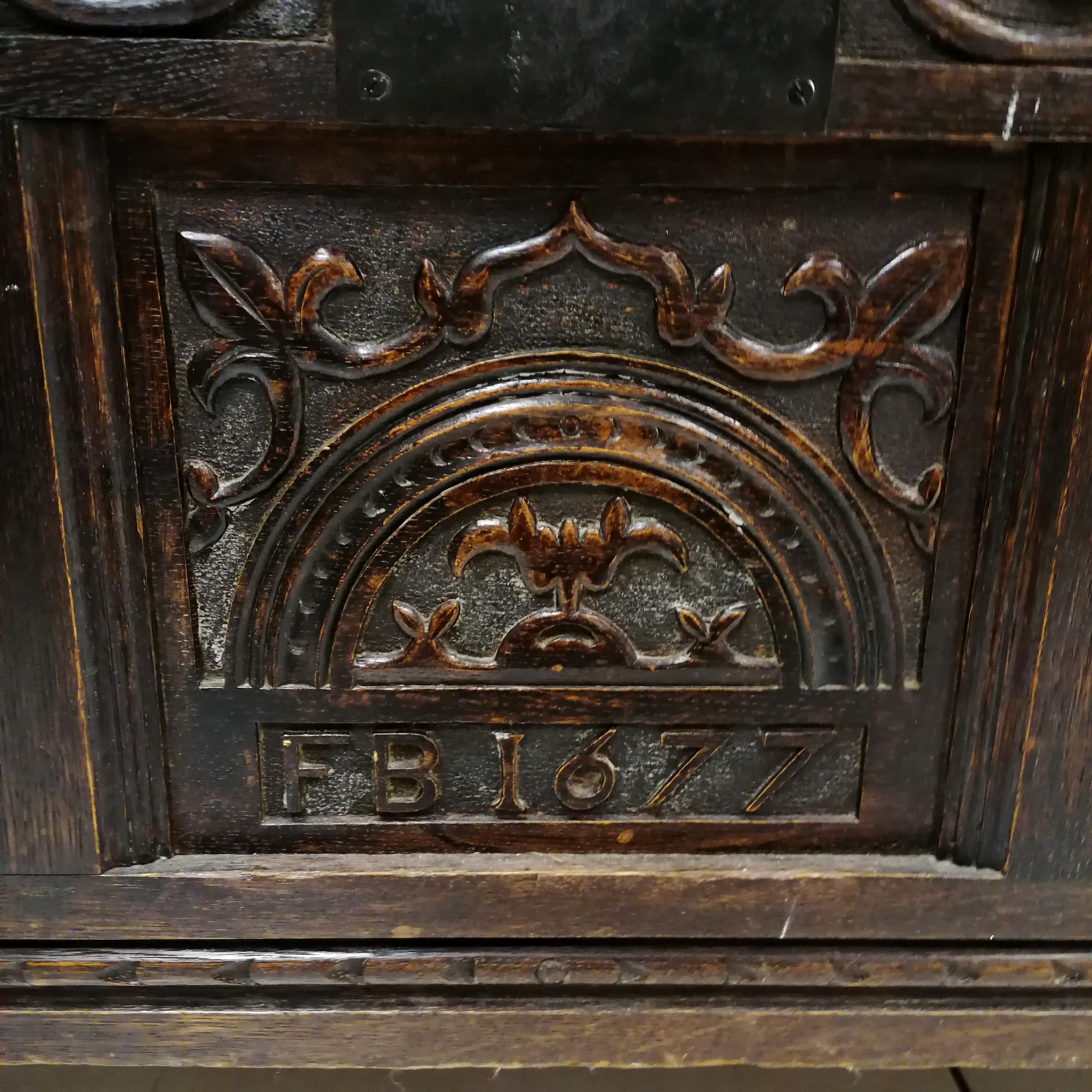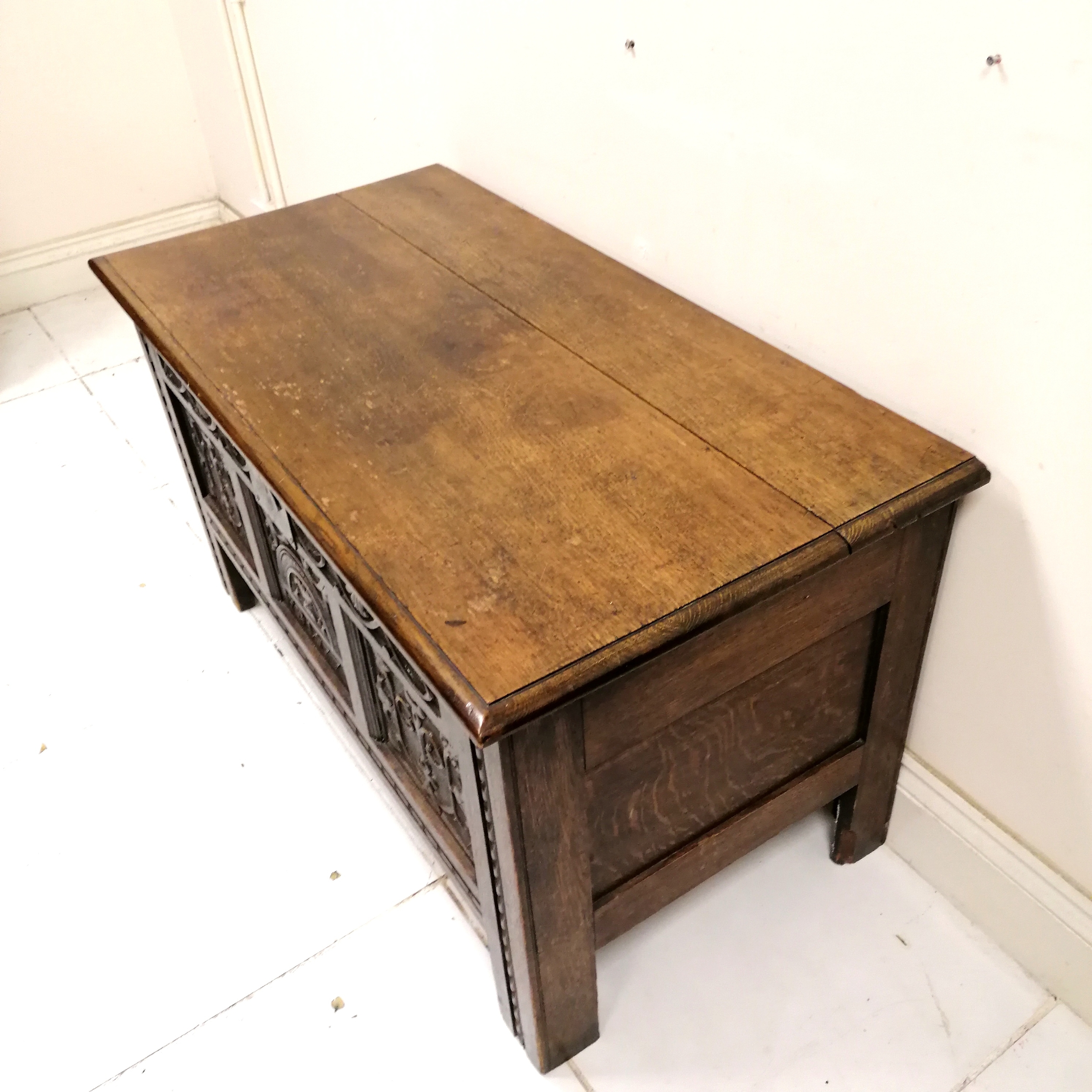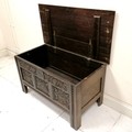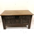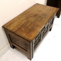 Antique coffer with earlier carved panels dated - 120cm x 61cm x 66cm