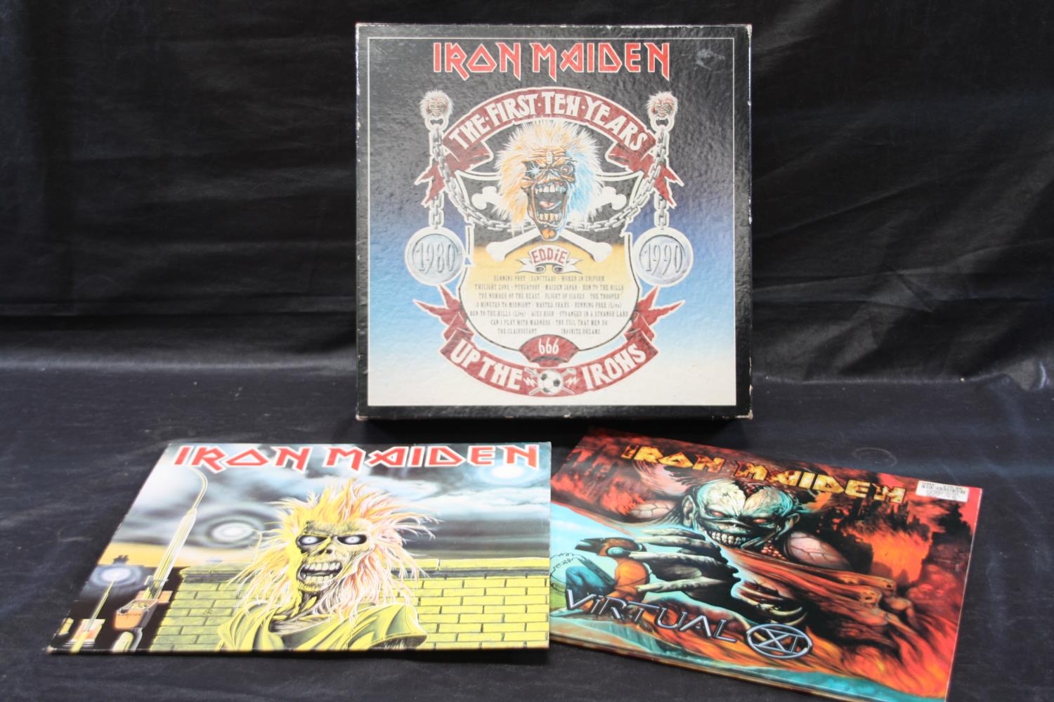 Iron Maiden - The First Ten Years ten 12" vinyl box set plus two other Iron Maiden LPS