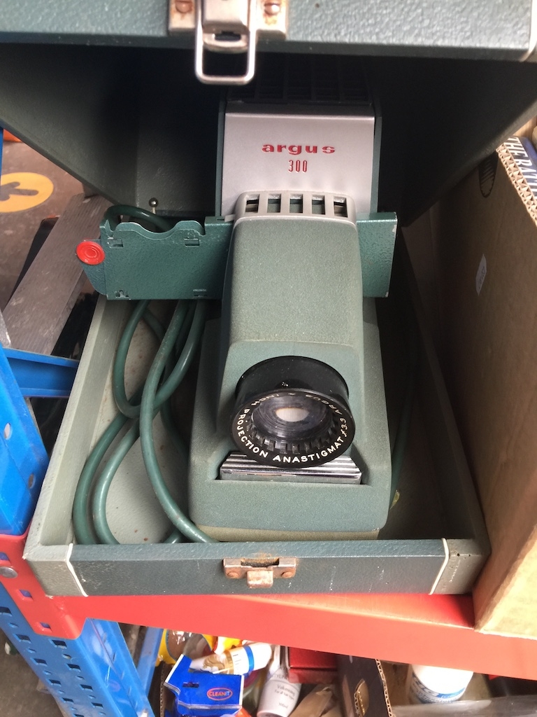 A vintage Hanimex Argus 300 slide projector in original case with key