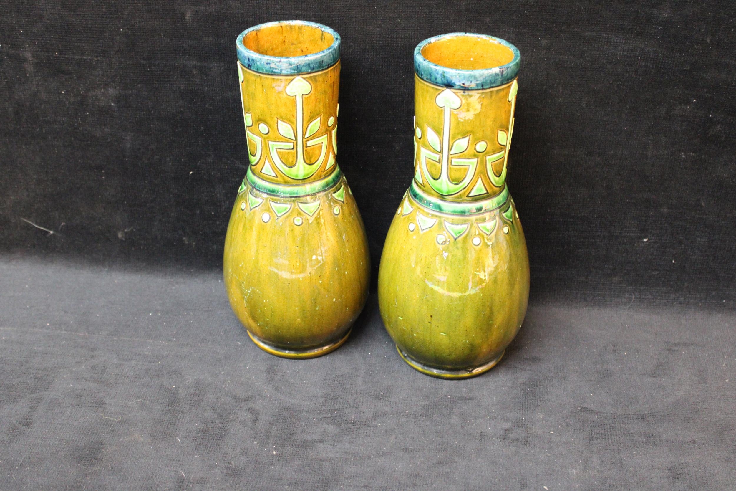 A pair of art nouveau Belgian Flemish vases c1890 each 26cmH