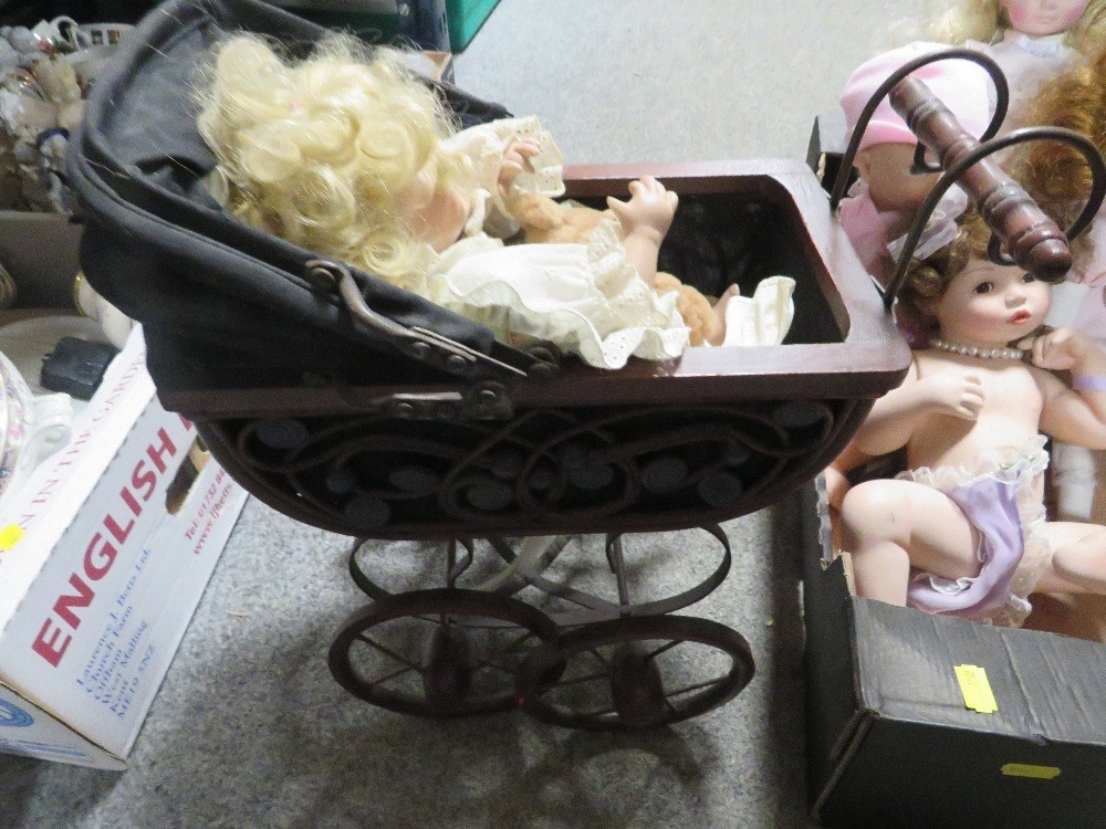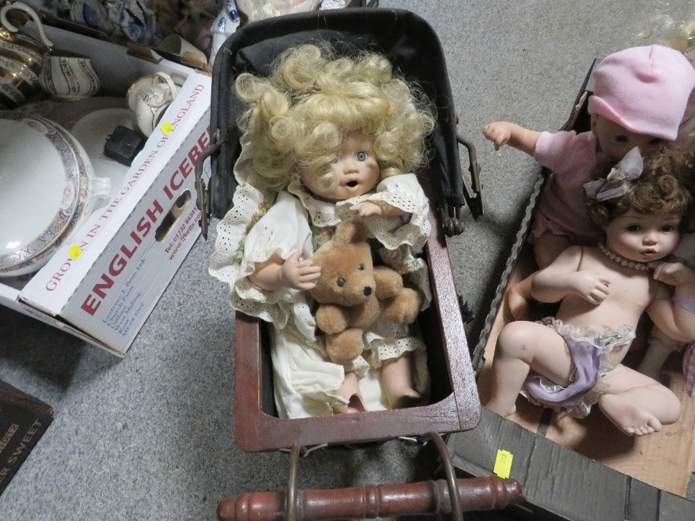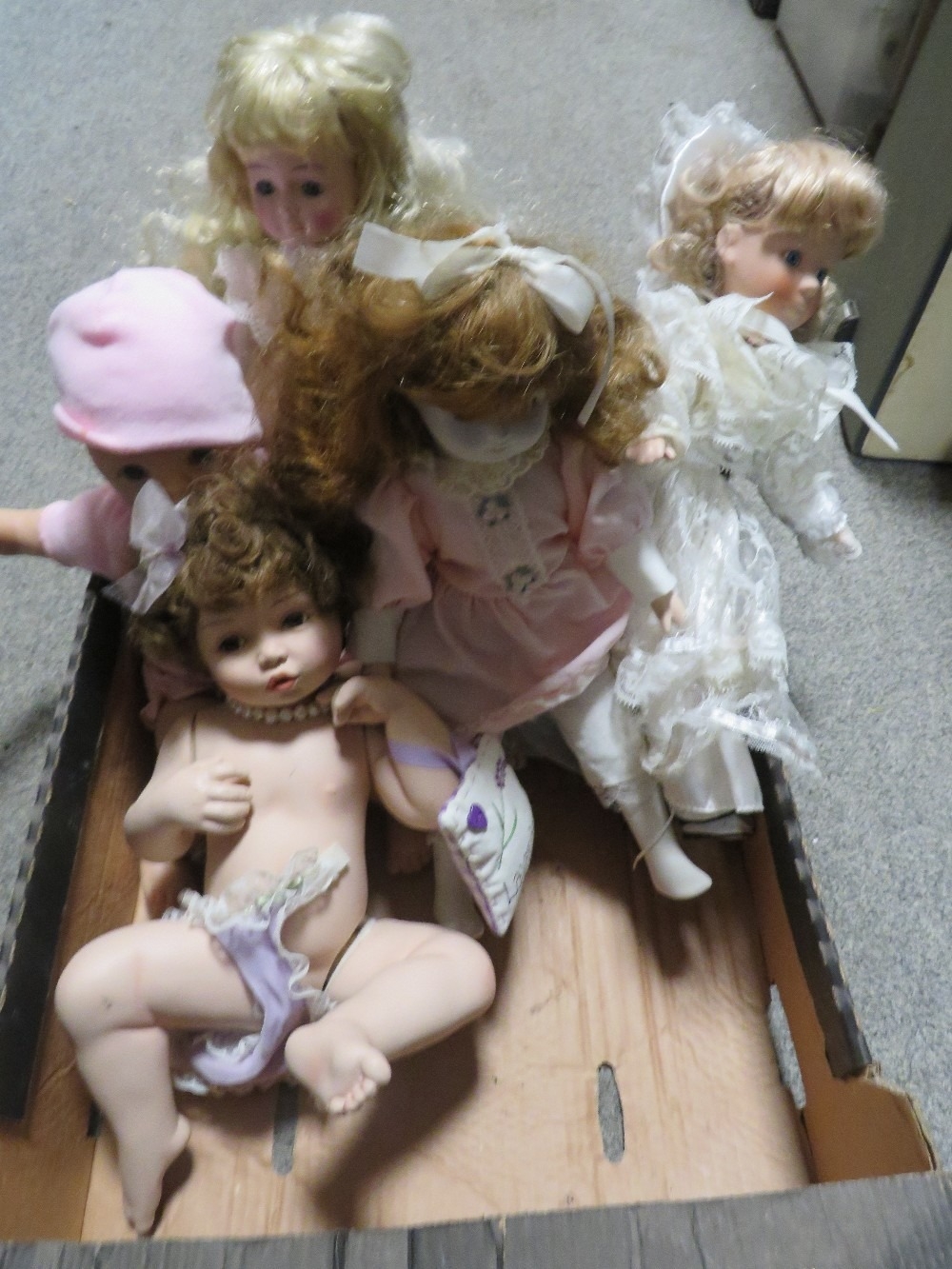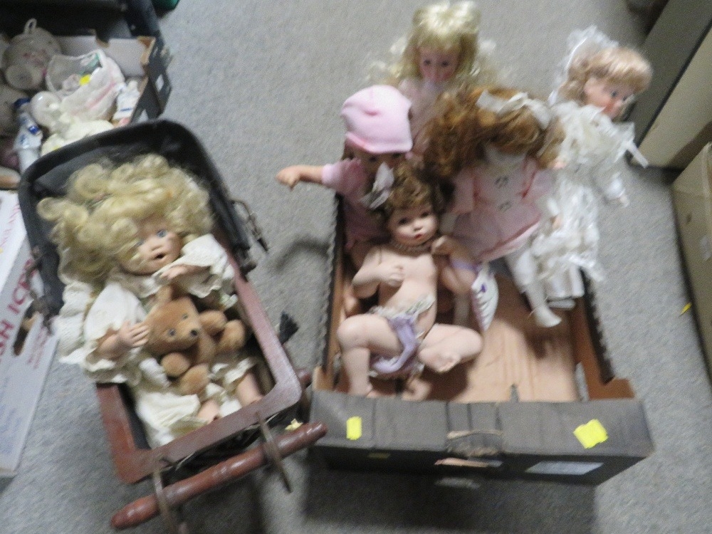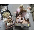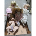 A tray of assorted dolls etc