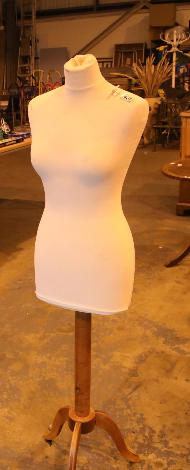 Dressmakers female model on tripod wooden base. Not available for in-house P&P, contact Paul O'Hea at Mailboxes on 01925 659133