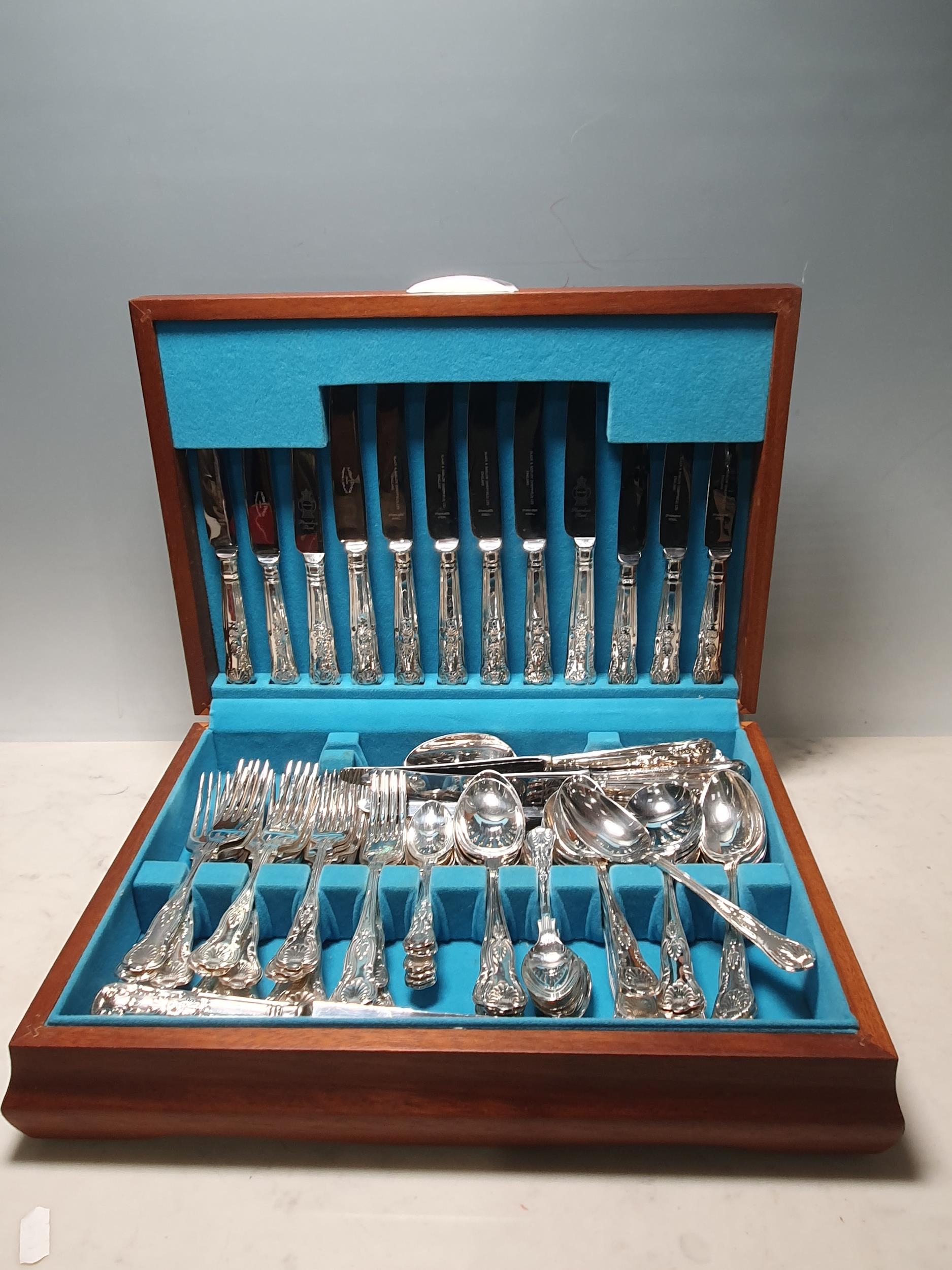 A Canteen of silver plated King's pattern Cutlery, the Knives with stainless steel blades, marked Slack & Barlow, Sheffield, (R7)