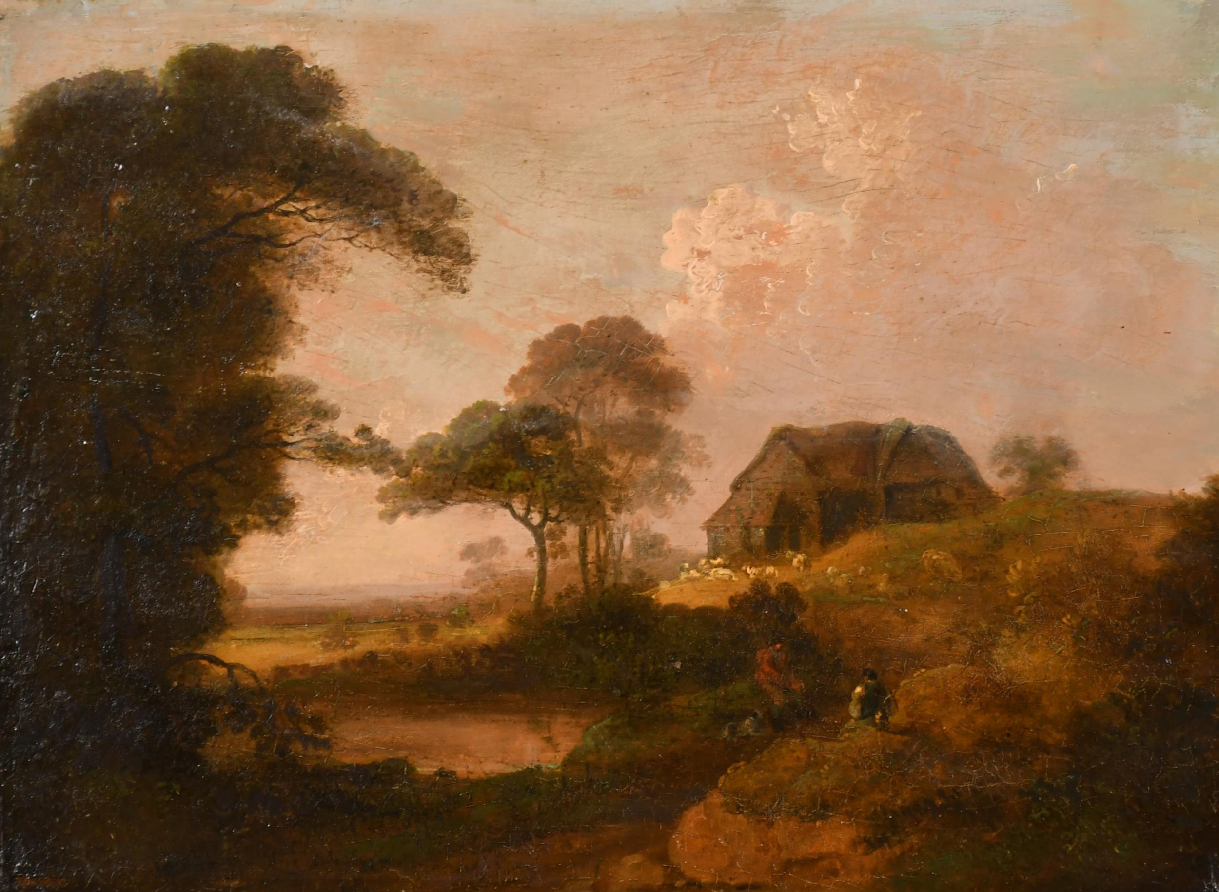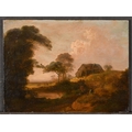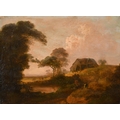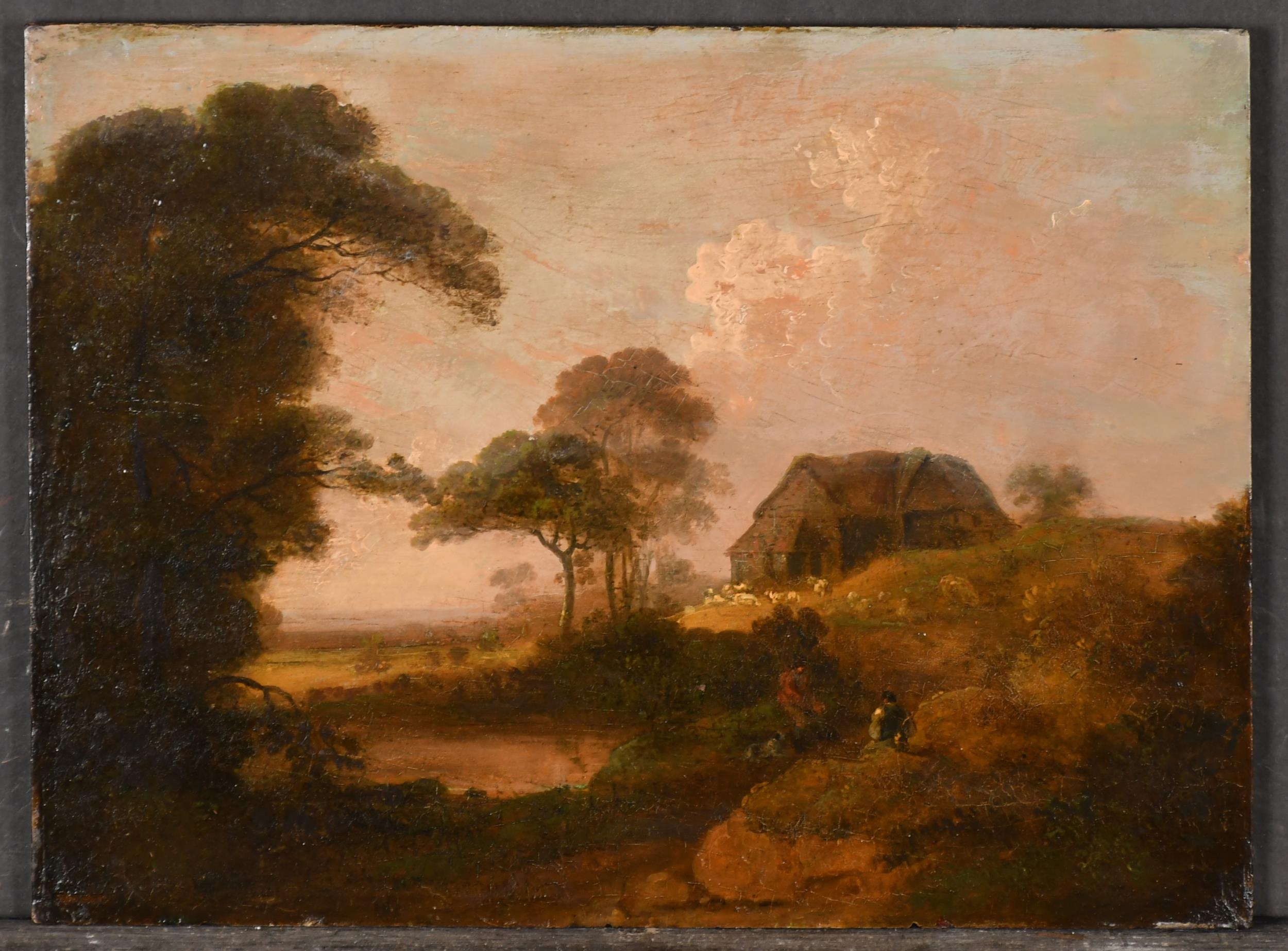 John Rathbone (1750-1807) British. Figures in a River Landscape, Oil on panel, unframed 9.75" x 13.4" (24.7 x 34cm)