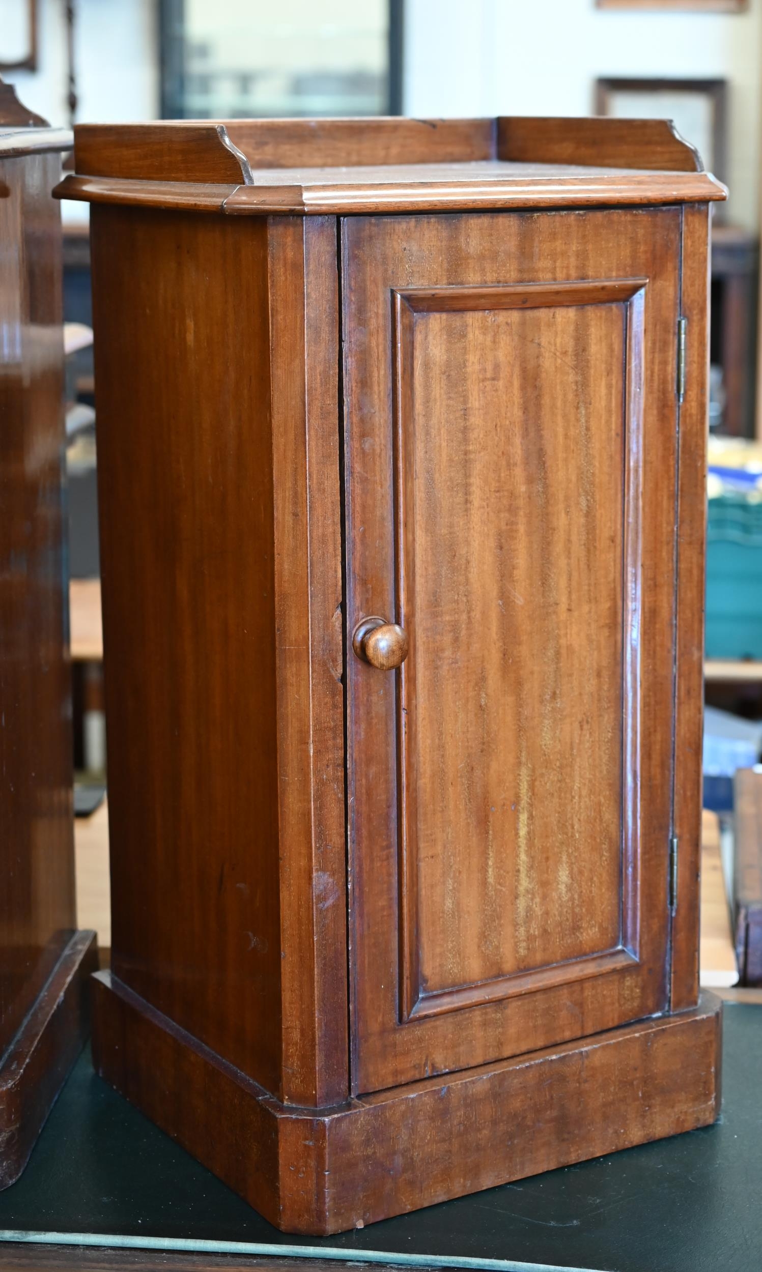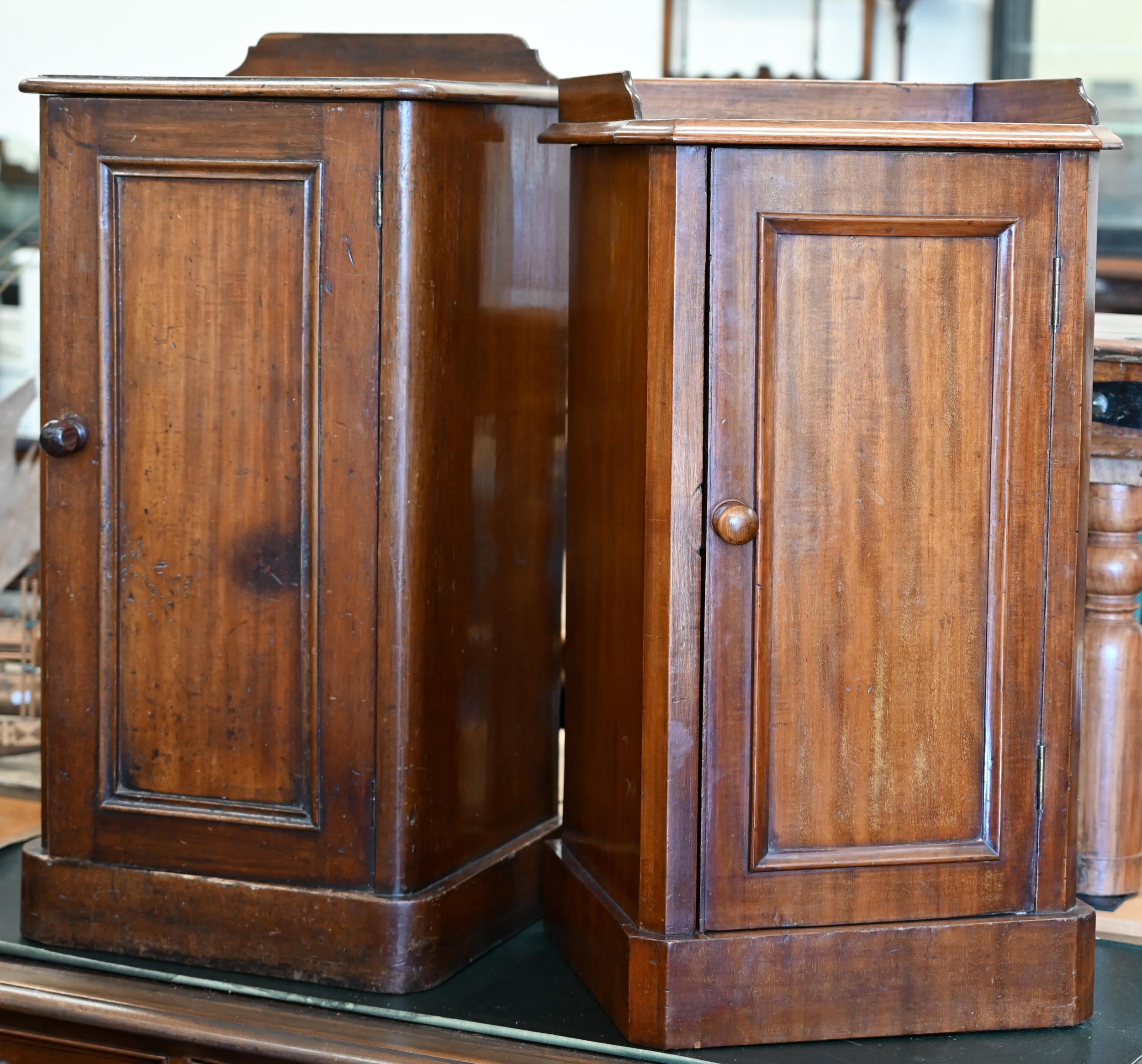 Two similar Victorian mahogany bedside cabinets with panelled doors, 40 x 34 x 78 cm high and 42 x 34 x 74 cm high (2)