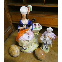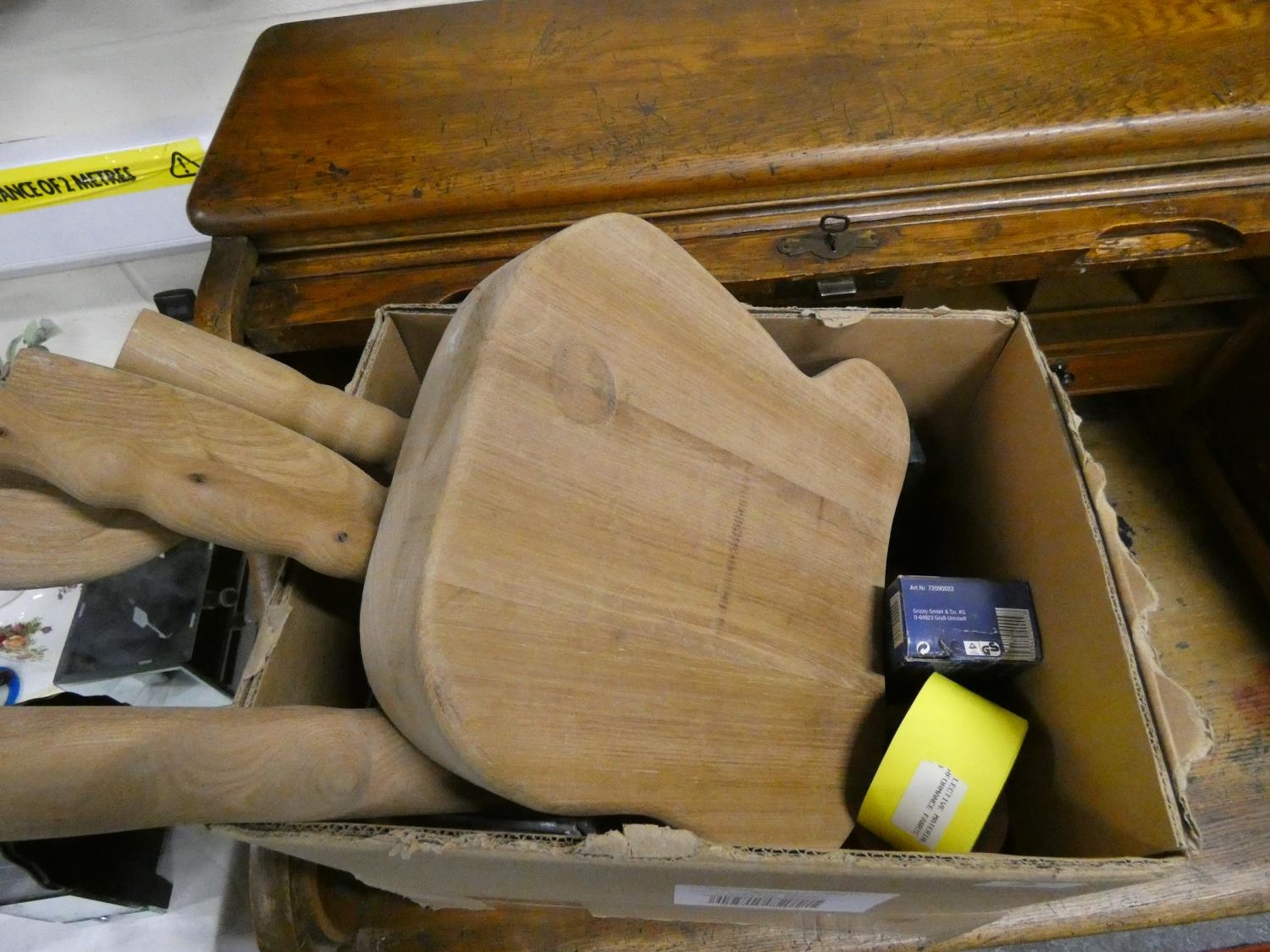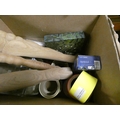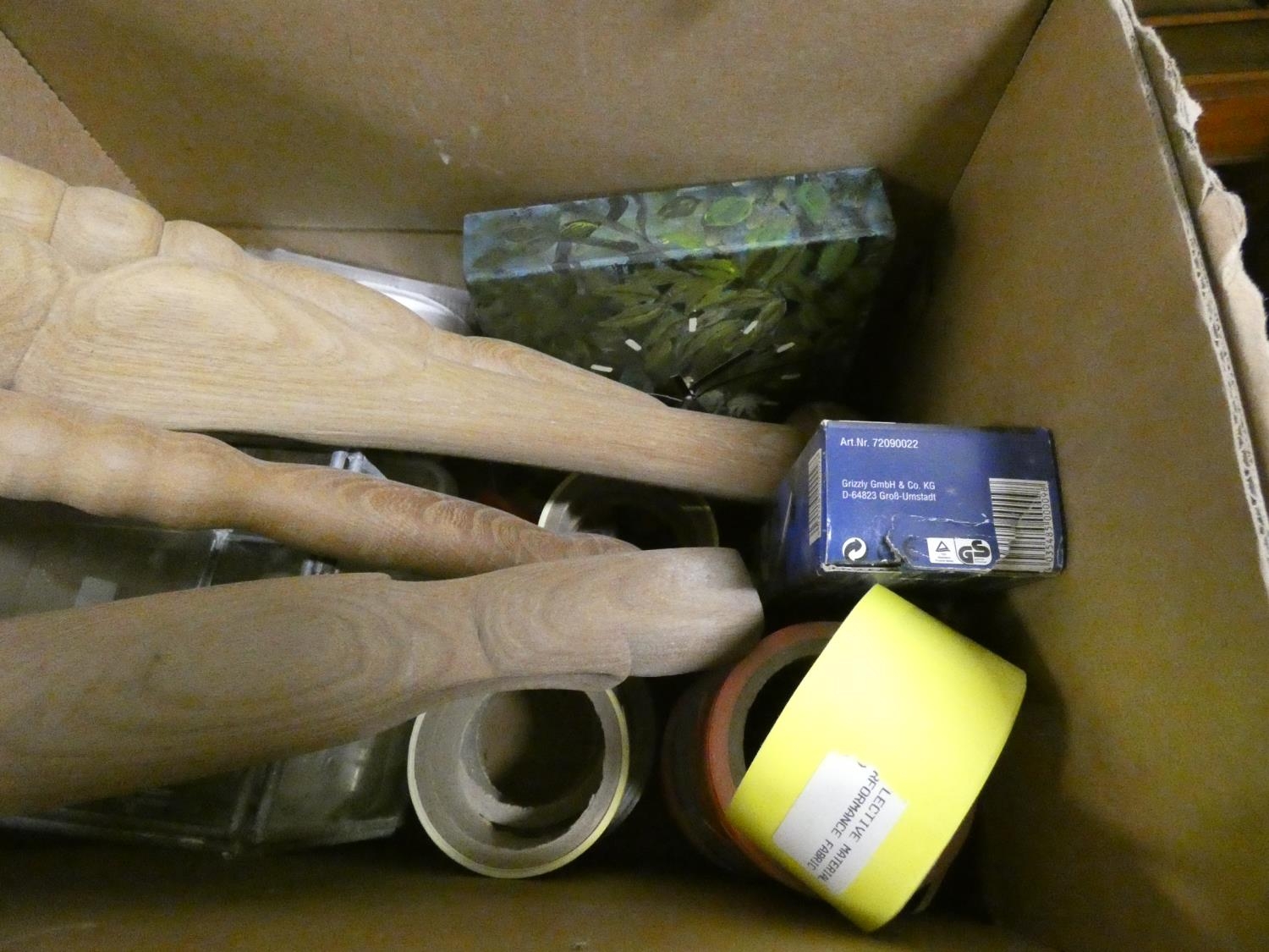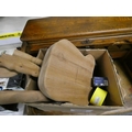 Box of craft items to include part made wooden footstool.