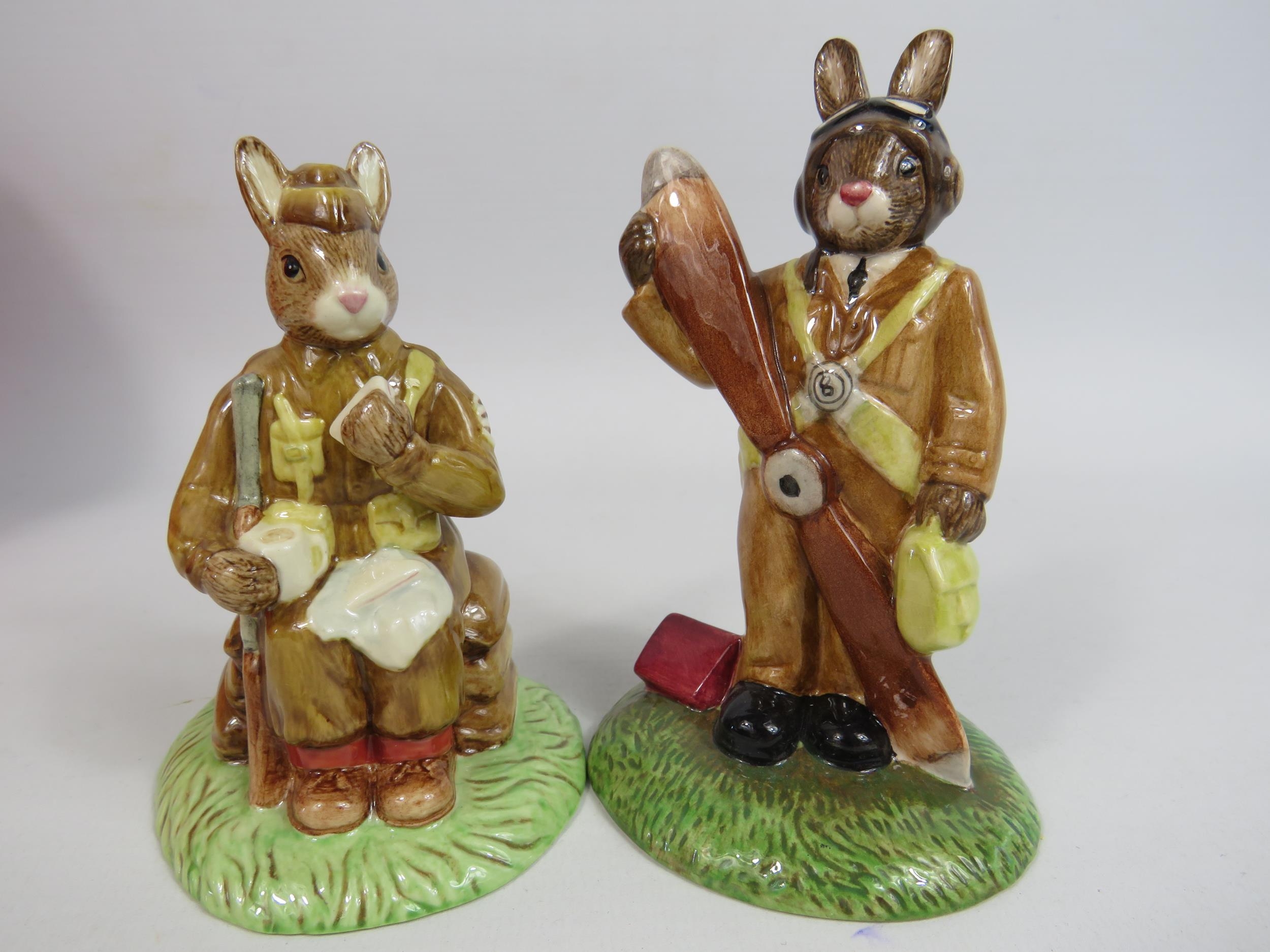 2 Royal Doulton Bunnykins World war II collection figurines Pilot and Homeguard both with boxes.