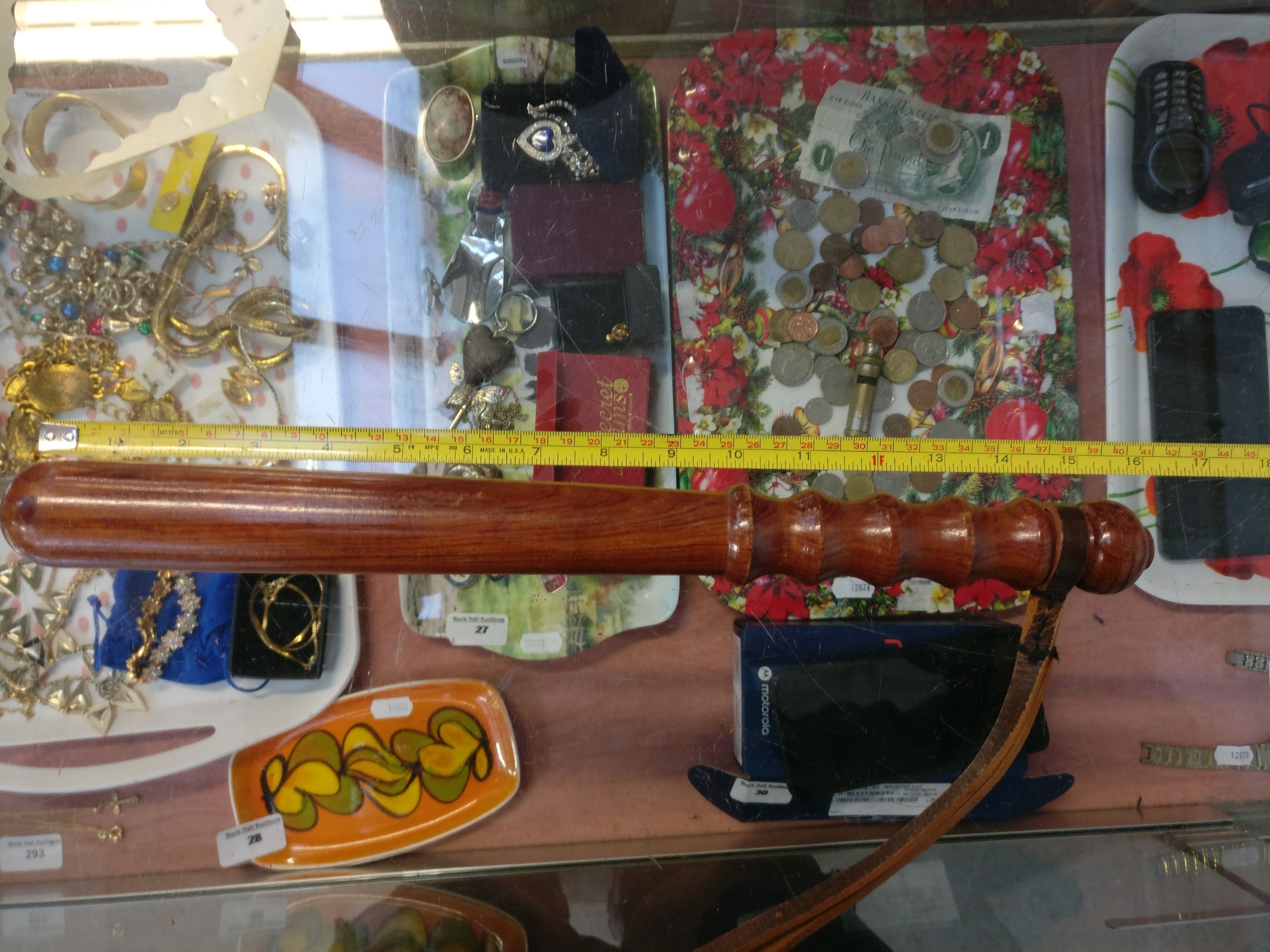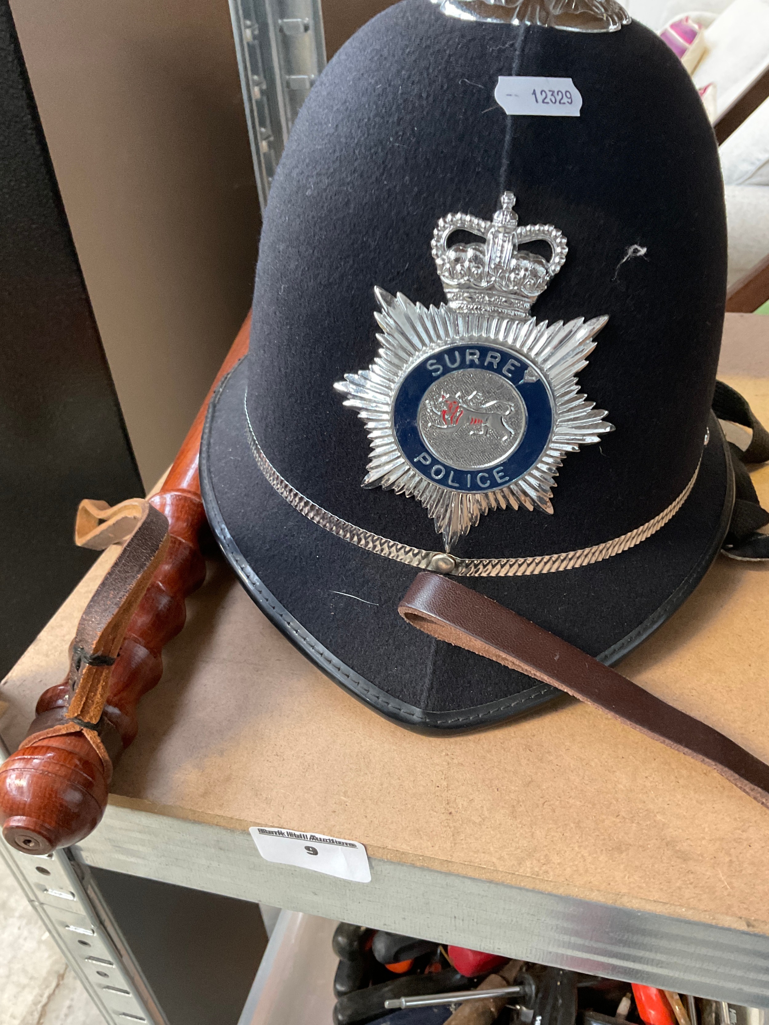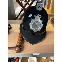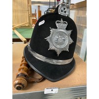 Police helmet and truncheon