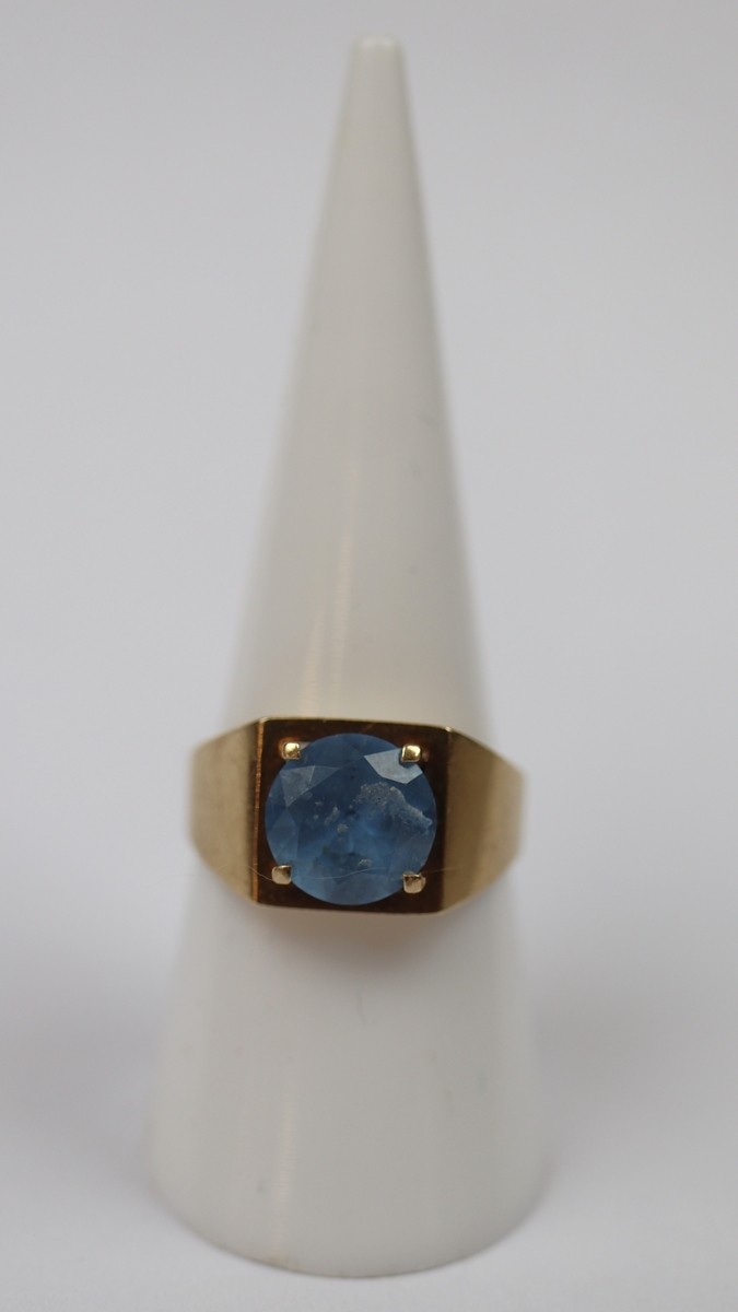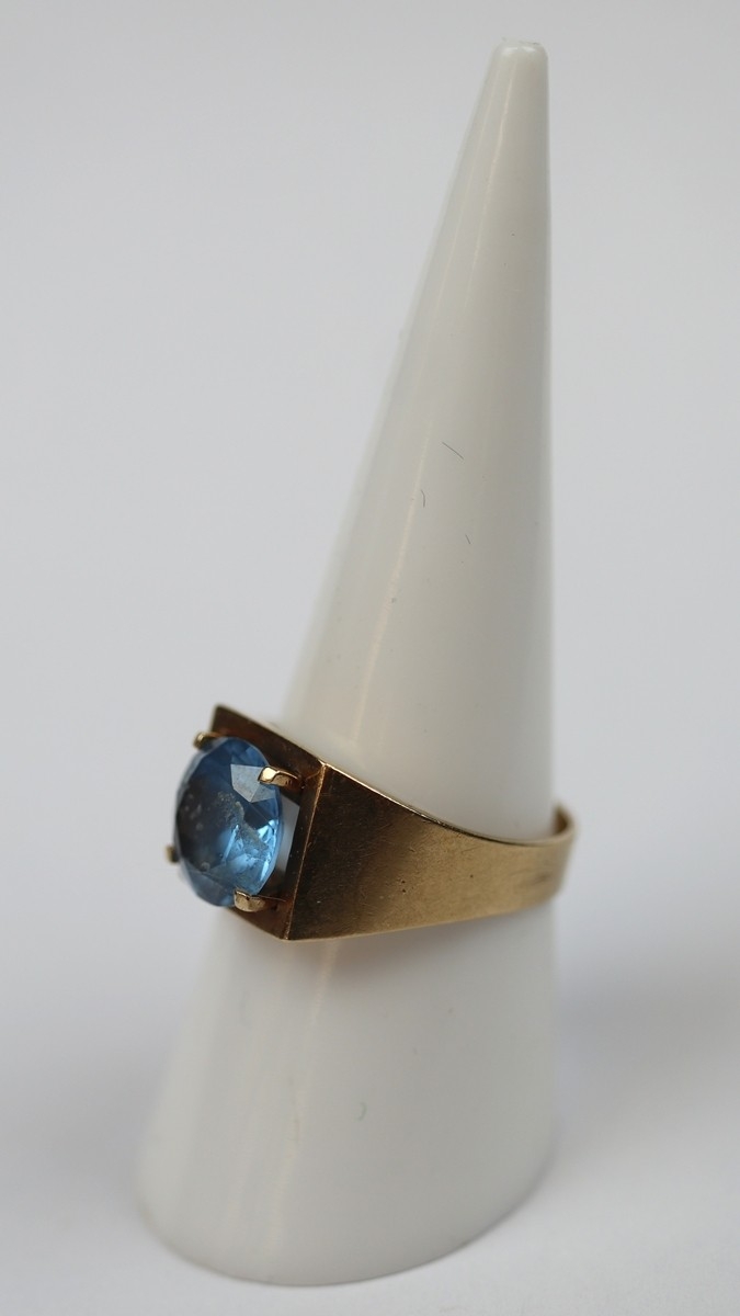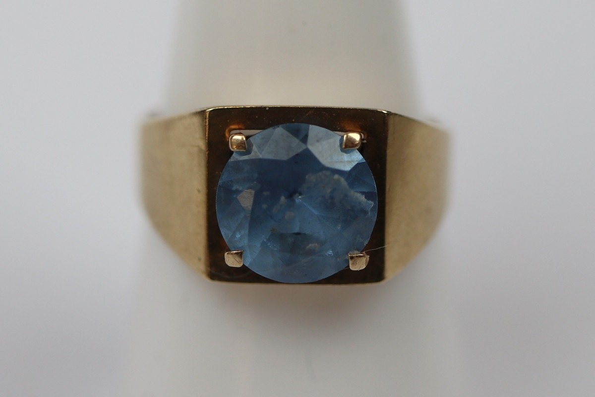 9ct gold blue zircon ring - Size - Approx 3.3g