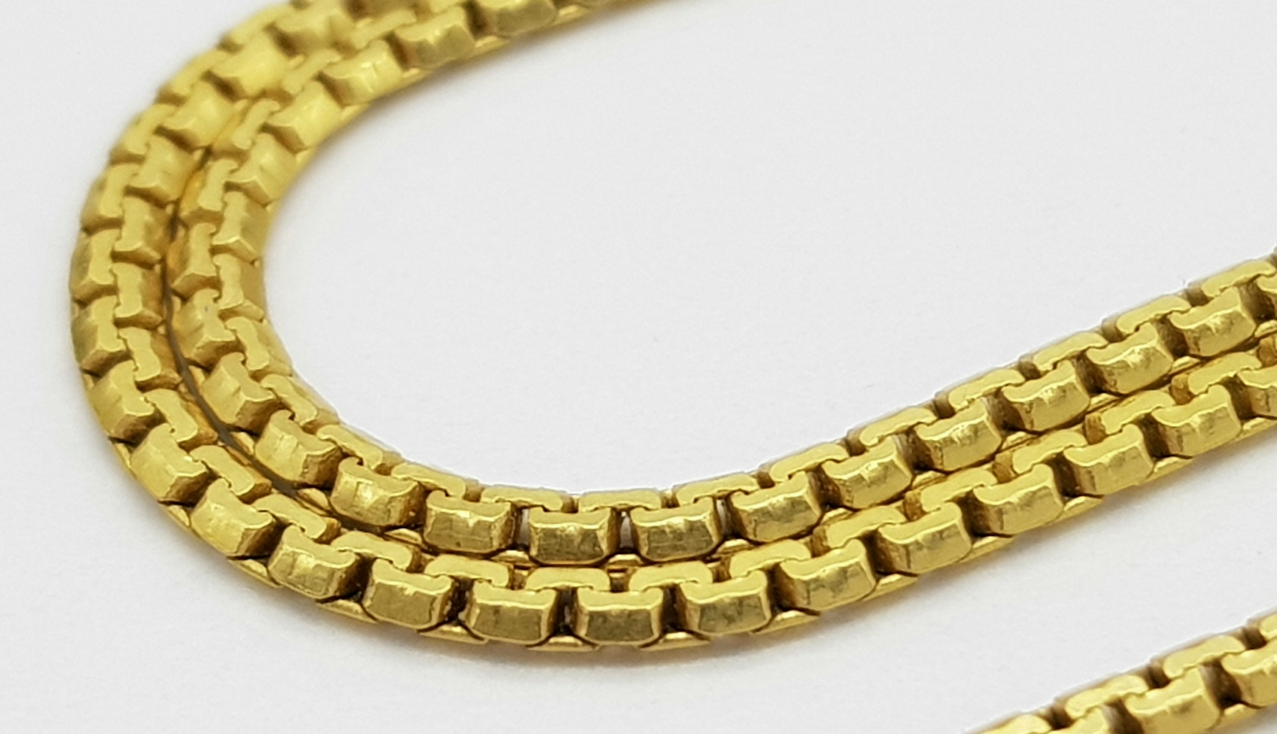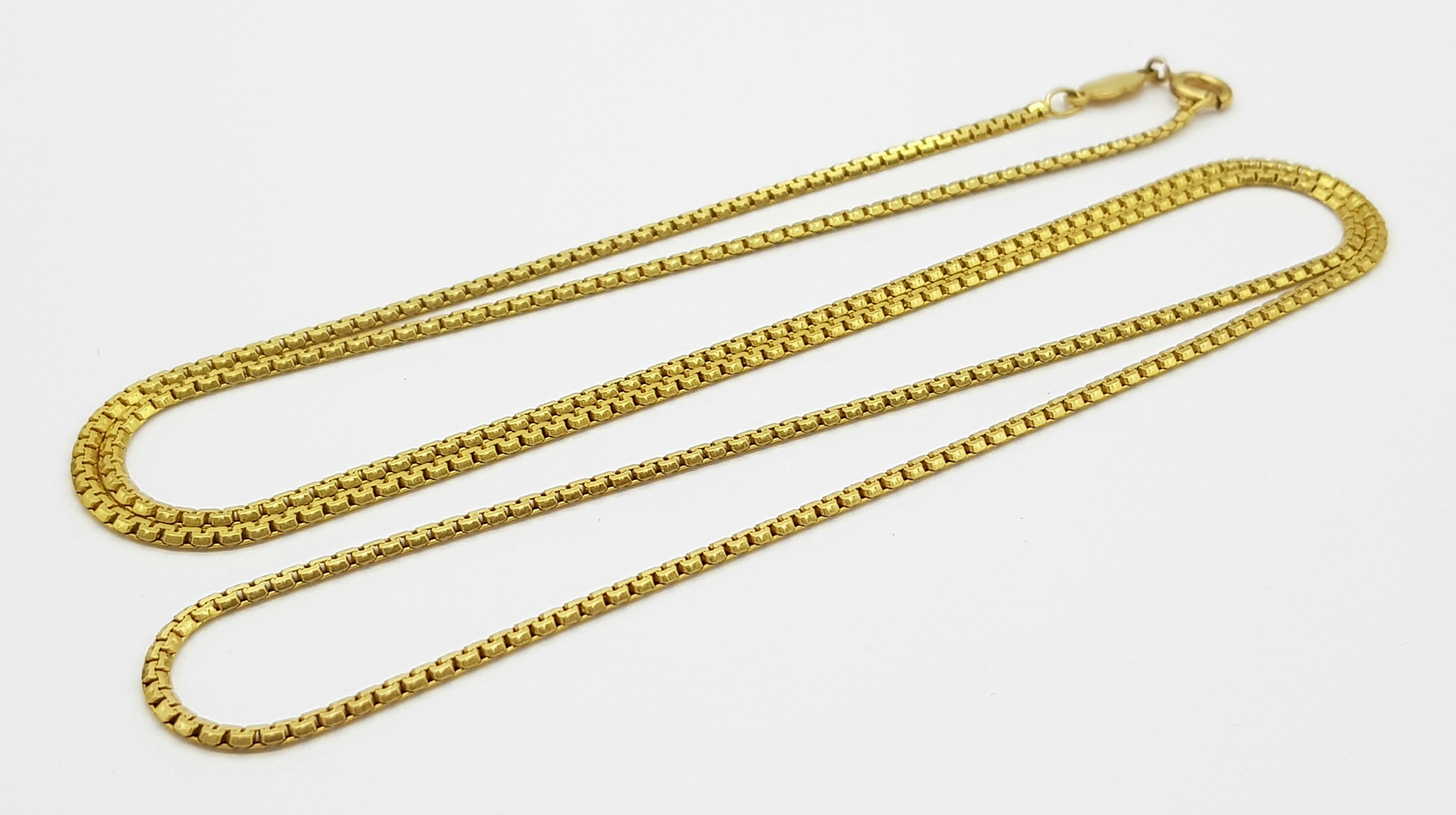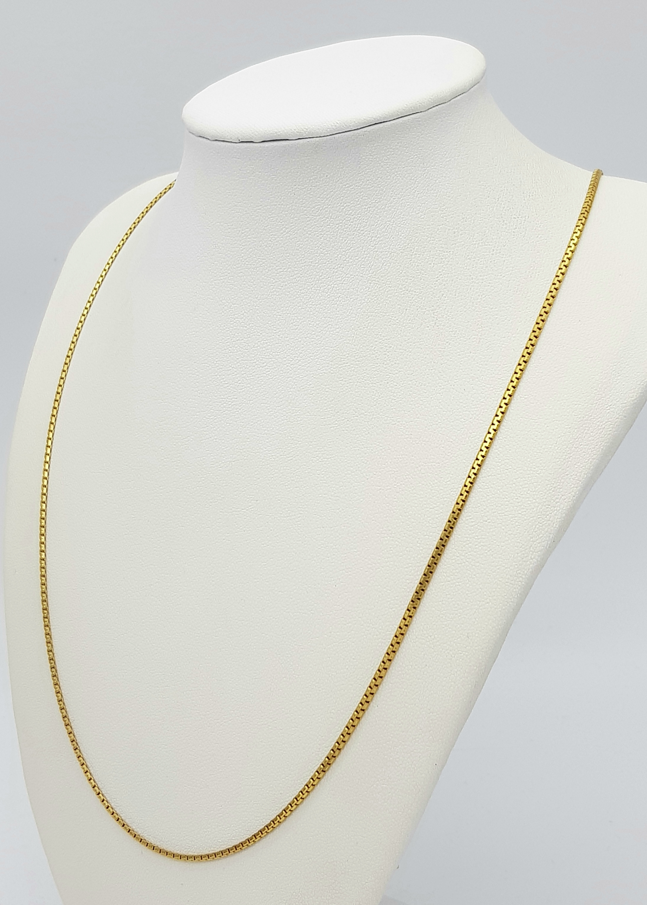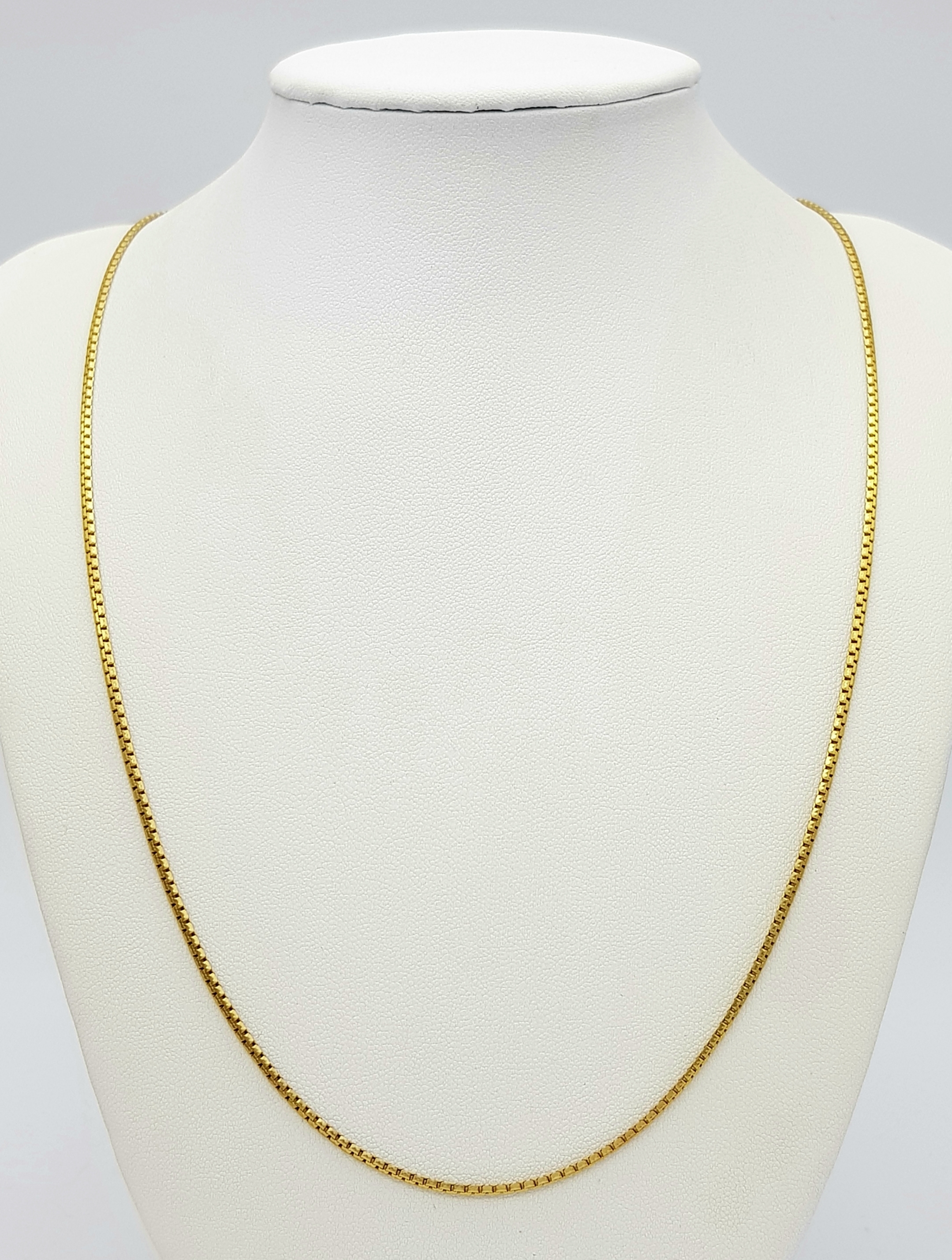 An 18K Yellow Gold Box Chain Necklace. 71cm length, 12.07g weight.