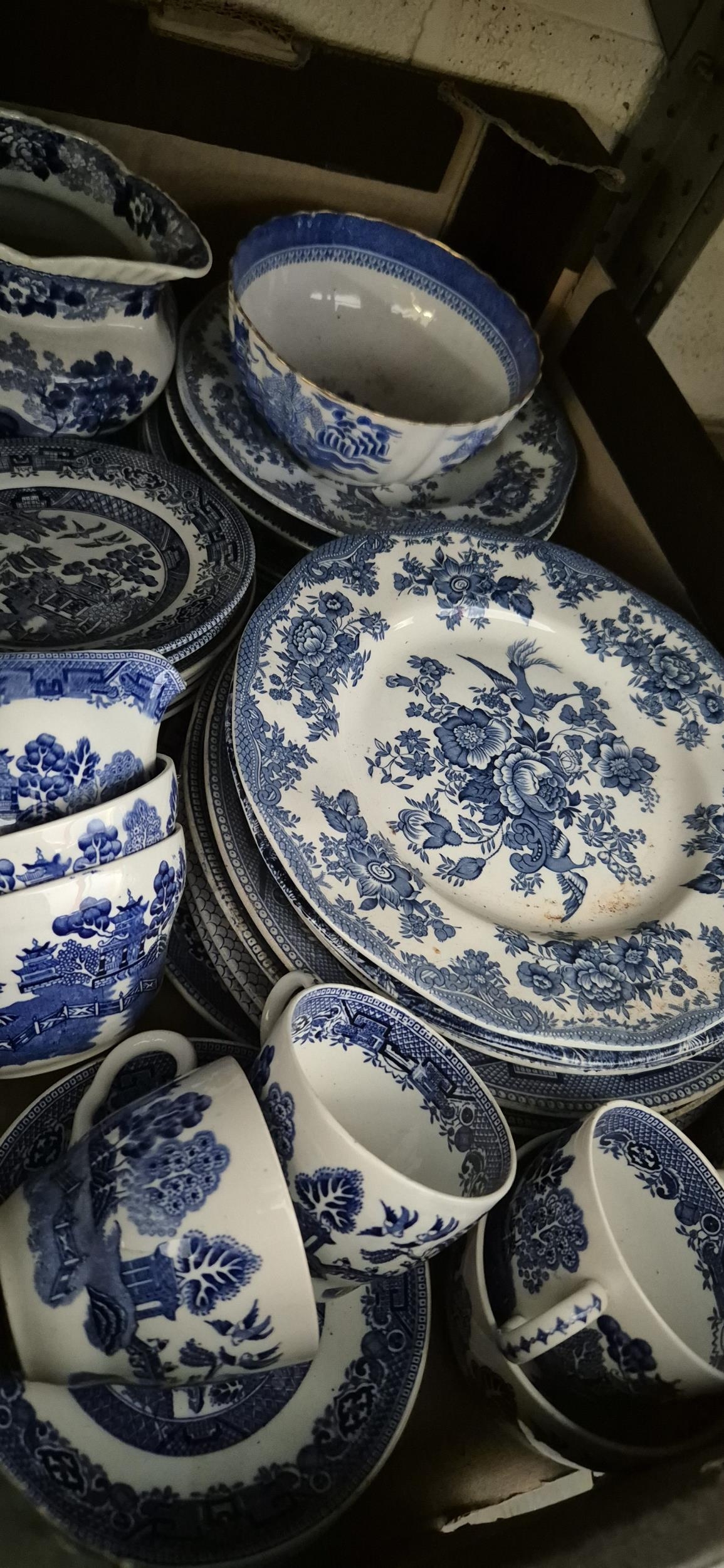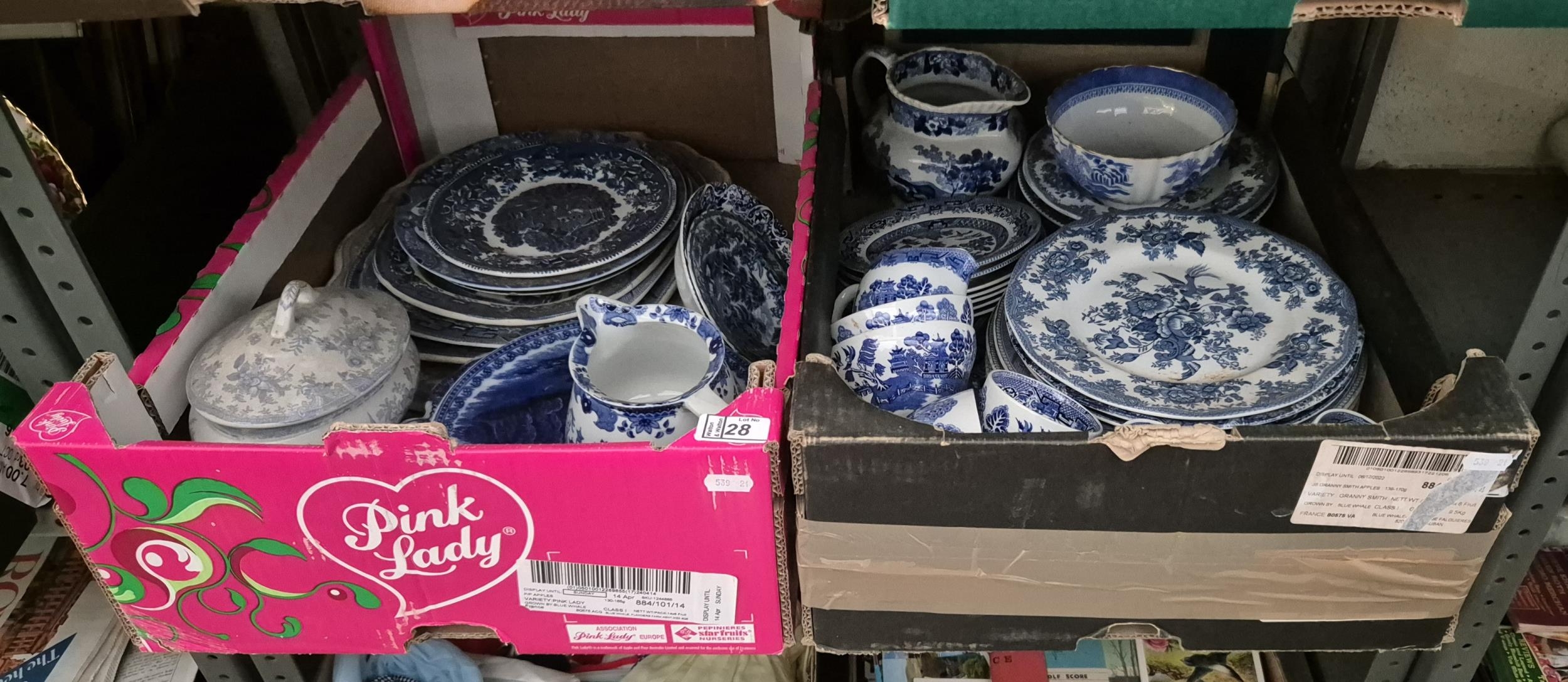 2 Boxes containing blue & white China including Ridgway 'Willow'