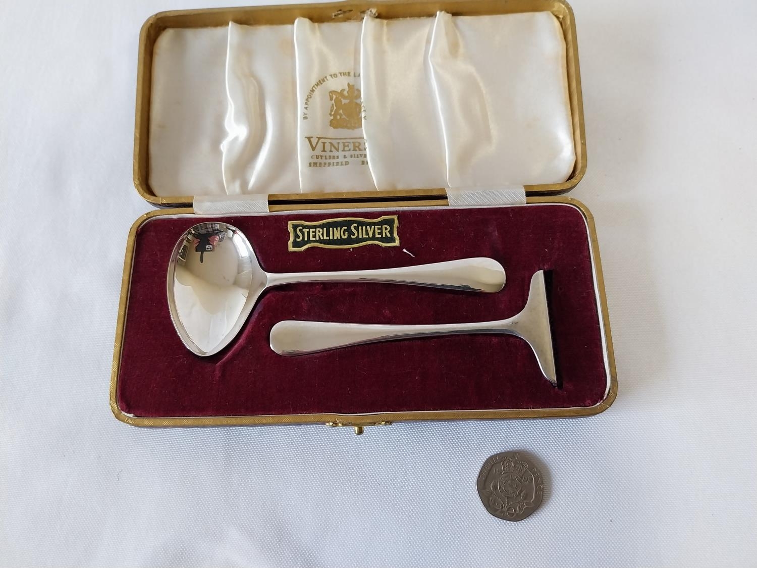HM Silver boxed baby spoon & pusher c1958