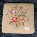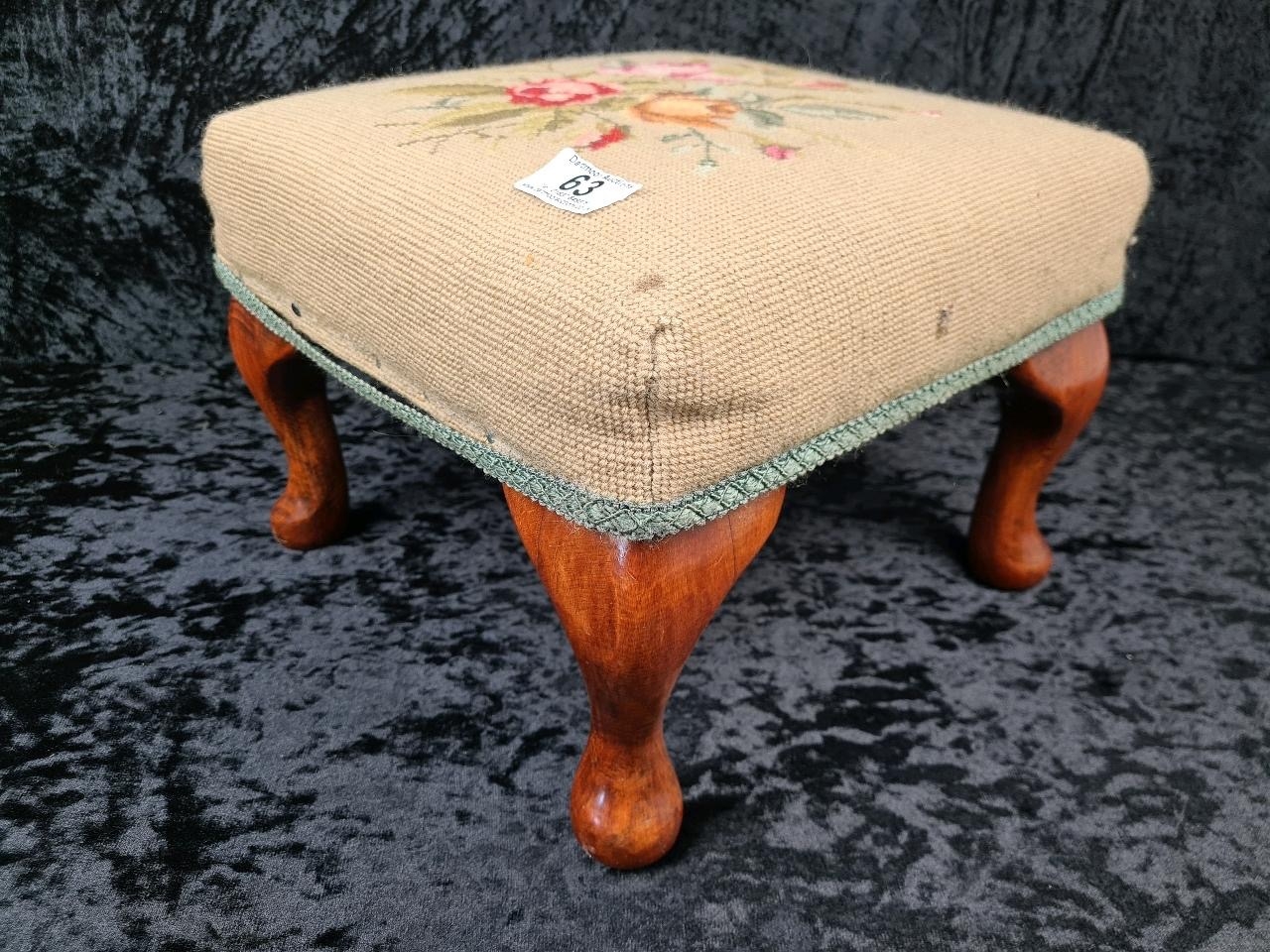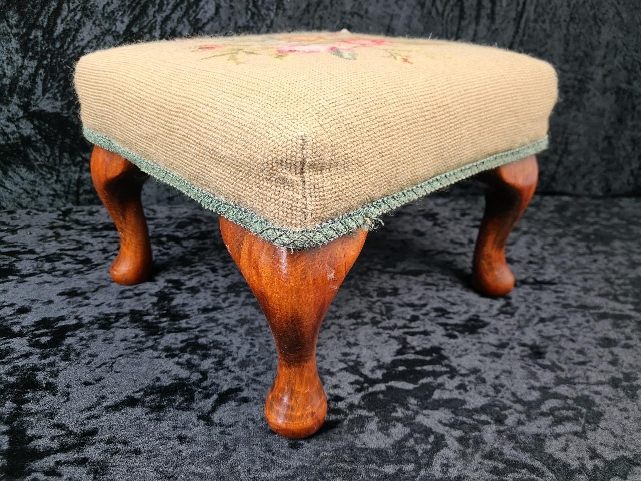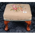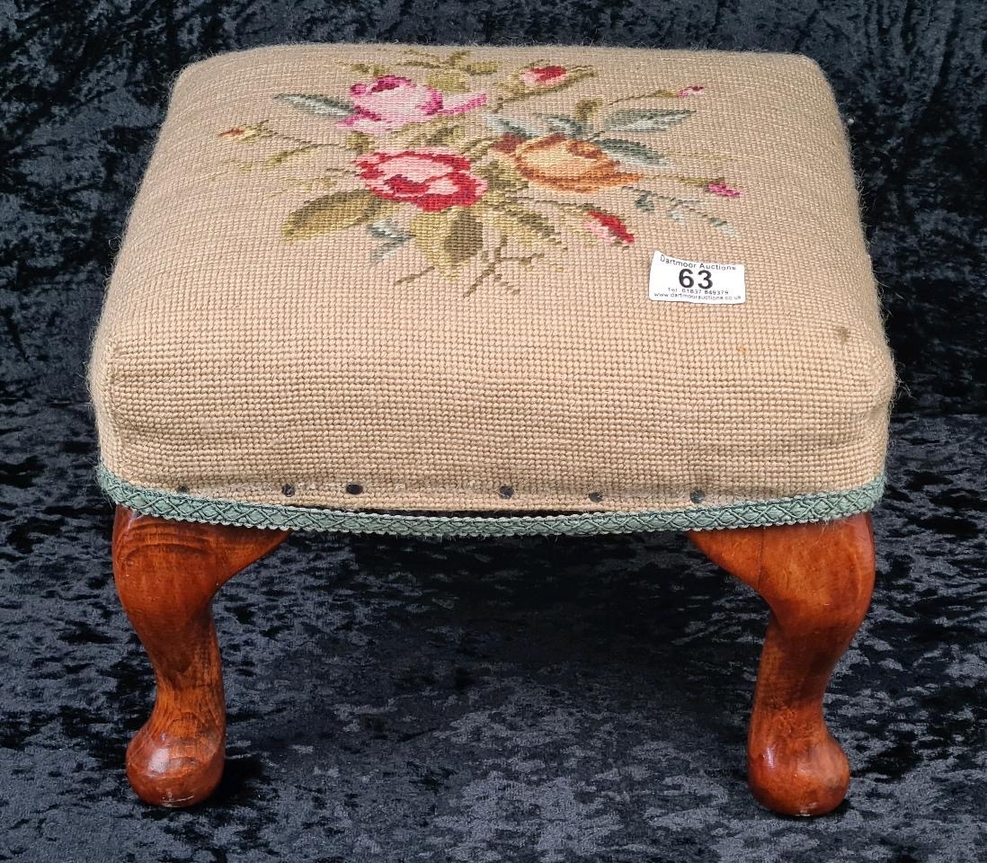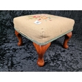 Small Victorian floral design needlepoint footstool with wooden cabriole legs.