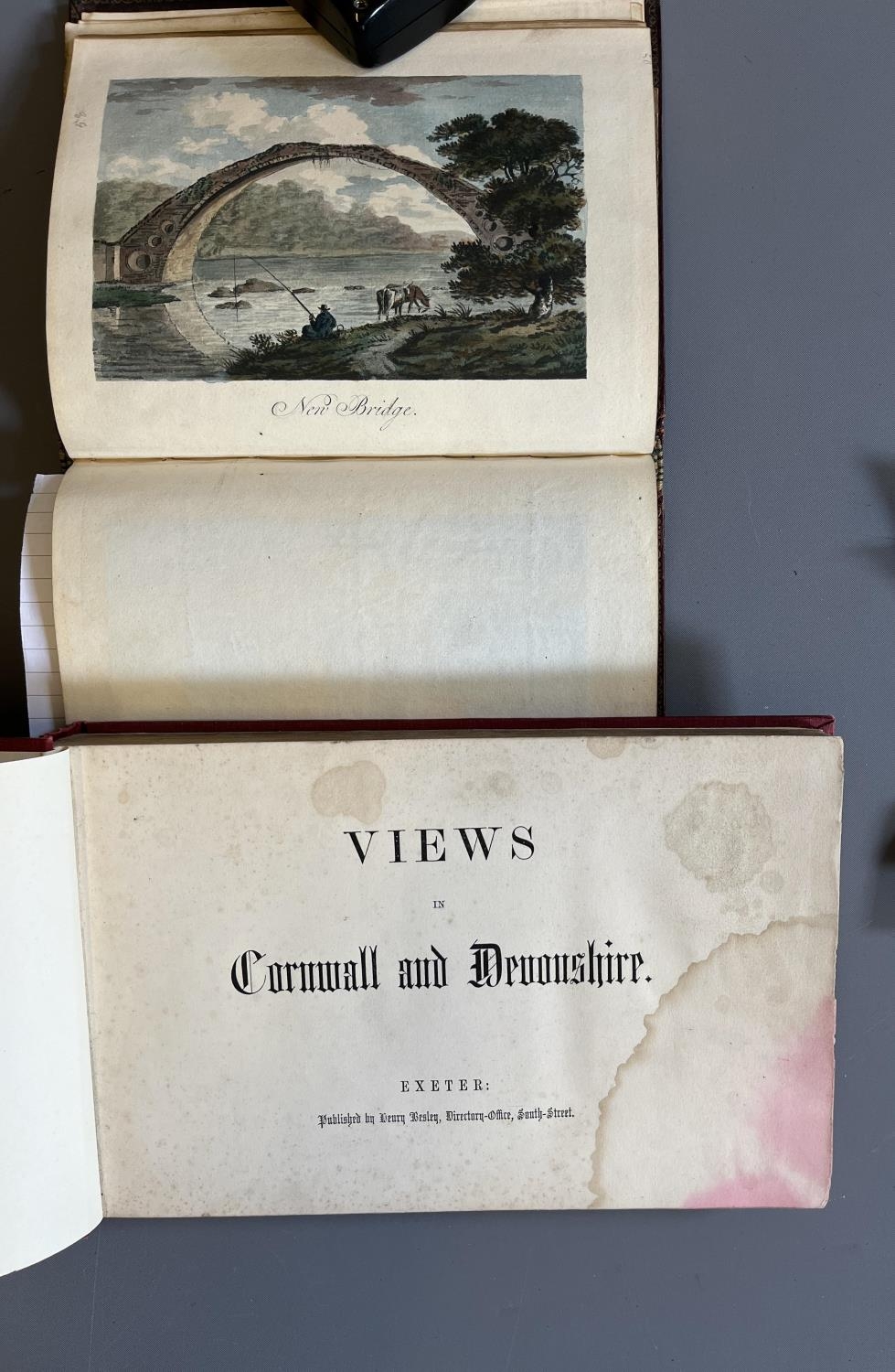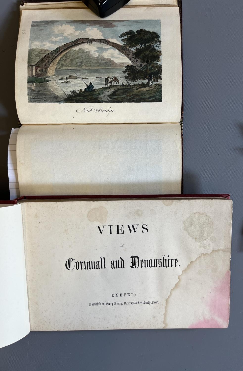 VIEWS IN CORNWALL AND DEVONSHIRE, Henry Besley, Exeter, [1861], later red cloth, stained. WITH Views in Great Britain, c.1830, bespoke expensively bound volume of engraved views, many coloured; all edges gilt (2) (Est. plus 20% premium)