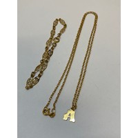 A 9ct. gold bracelet with heart shaped padlock hung with man...