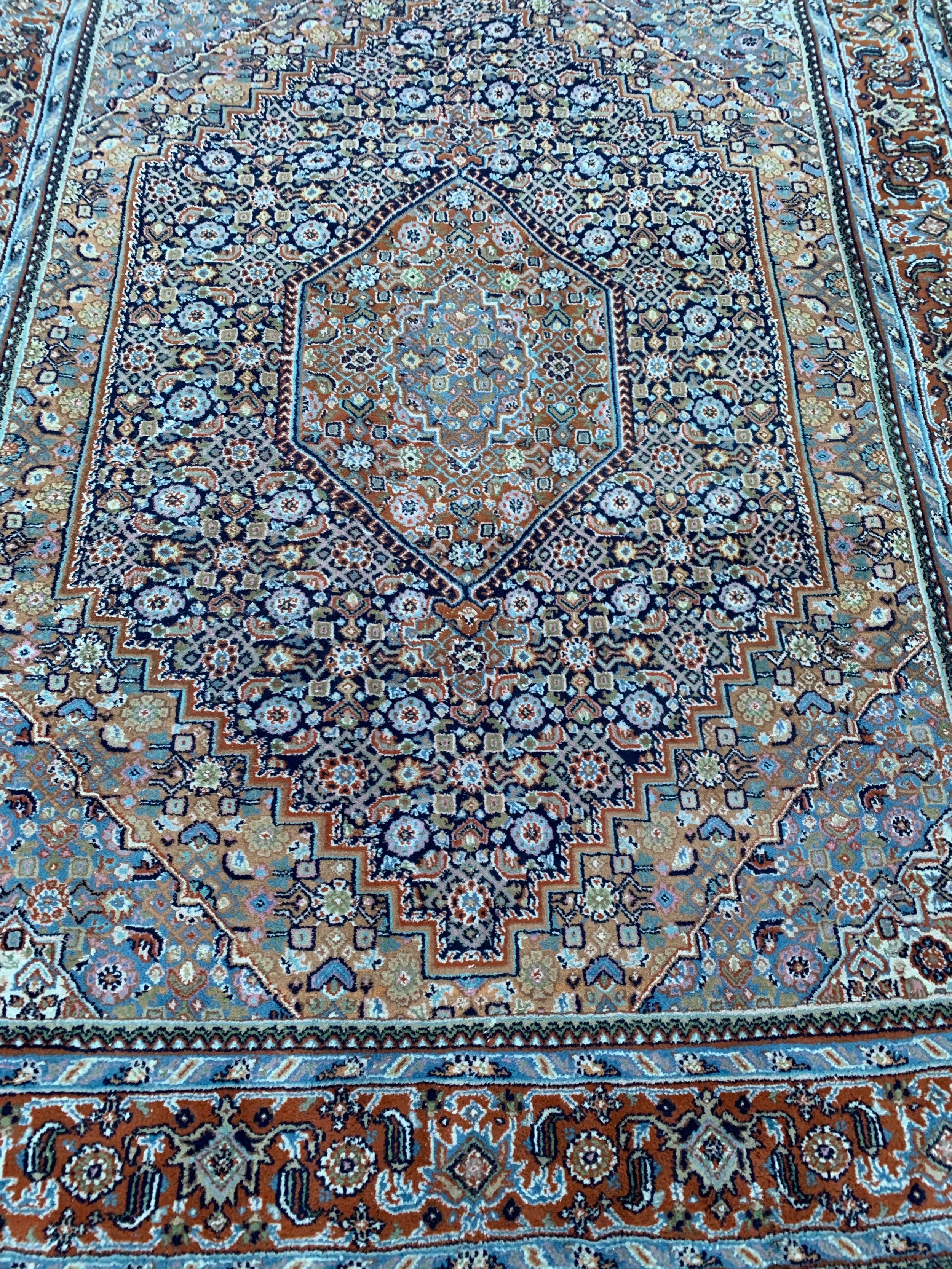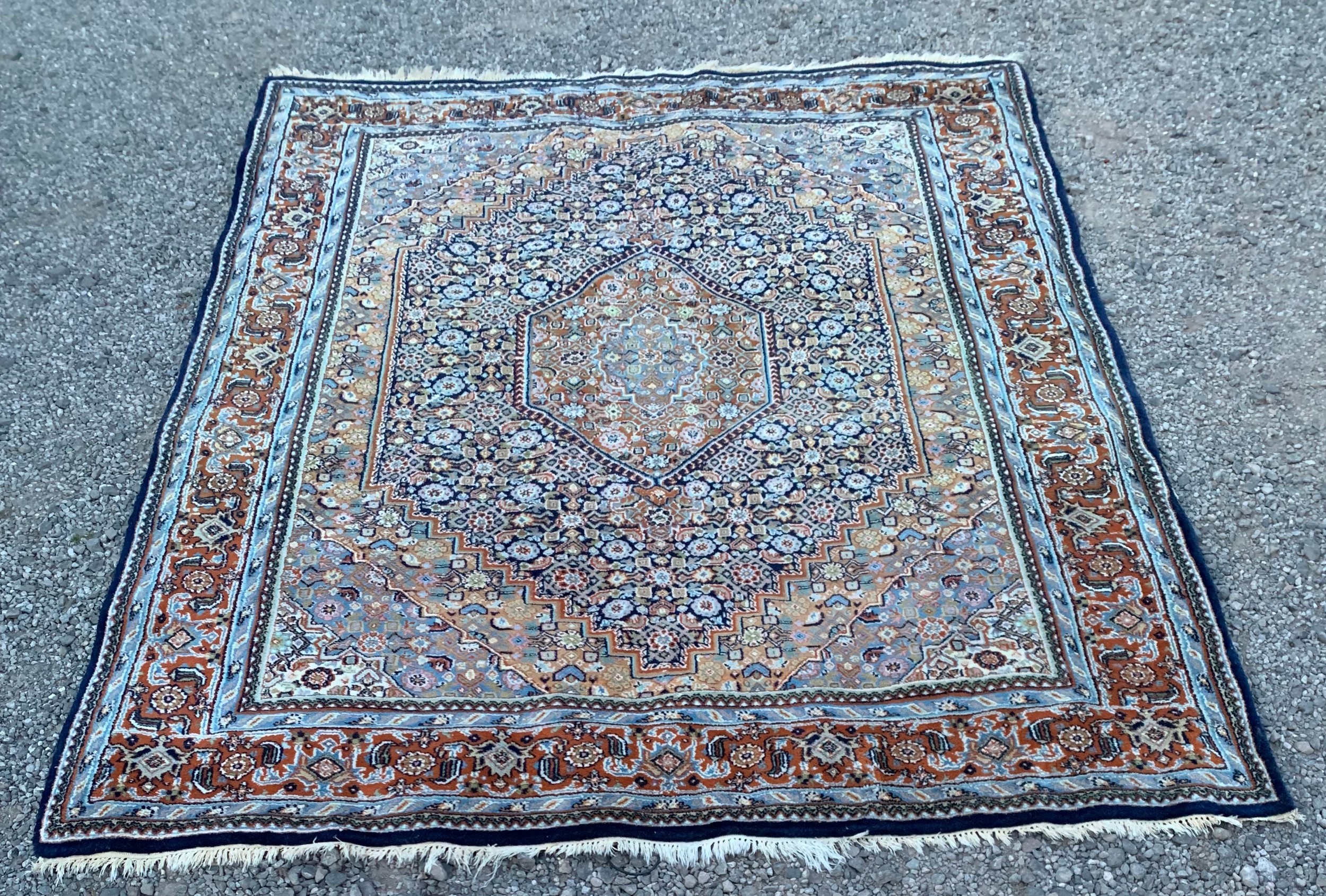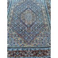 Decorative Blue Hand Knotted Rug With Darker Blue Border. 257 x 197 cms