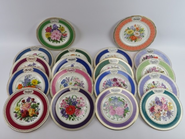 Eighteen Royal Horticultural Society Chelsea Flower Show plates. Dated between 1981 and 2001. (18 items) 25 cm widest diameter.