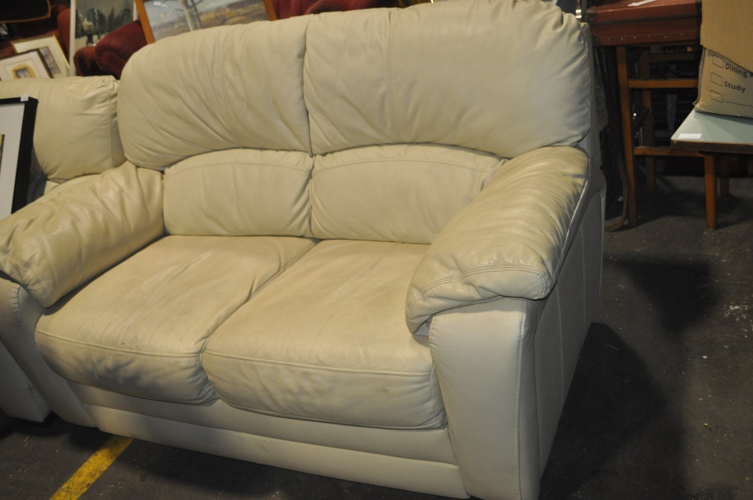A SOFT ALABASTER COLOURED LEATHER TWO SEATER SOFA