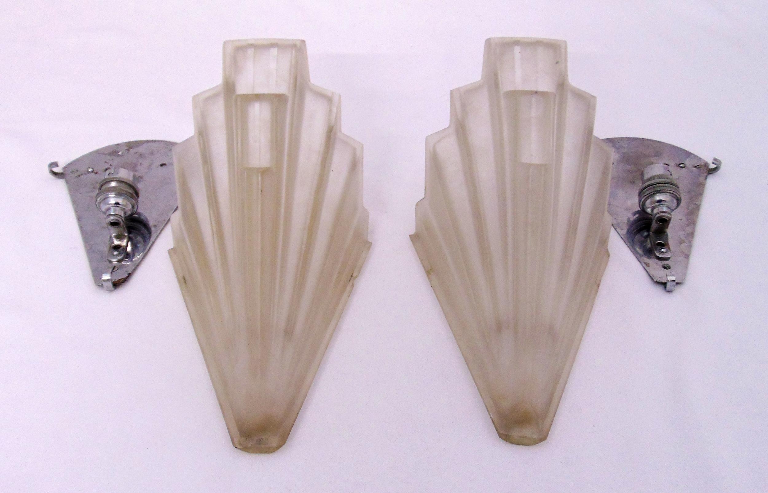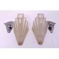 A pair of Art Deco frosted glass wall lights of stylised fan shape, 30cm (h)
