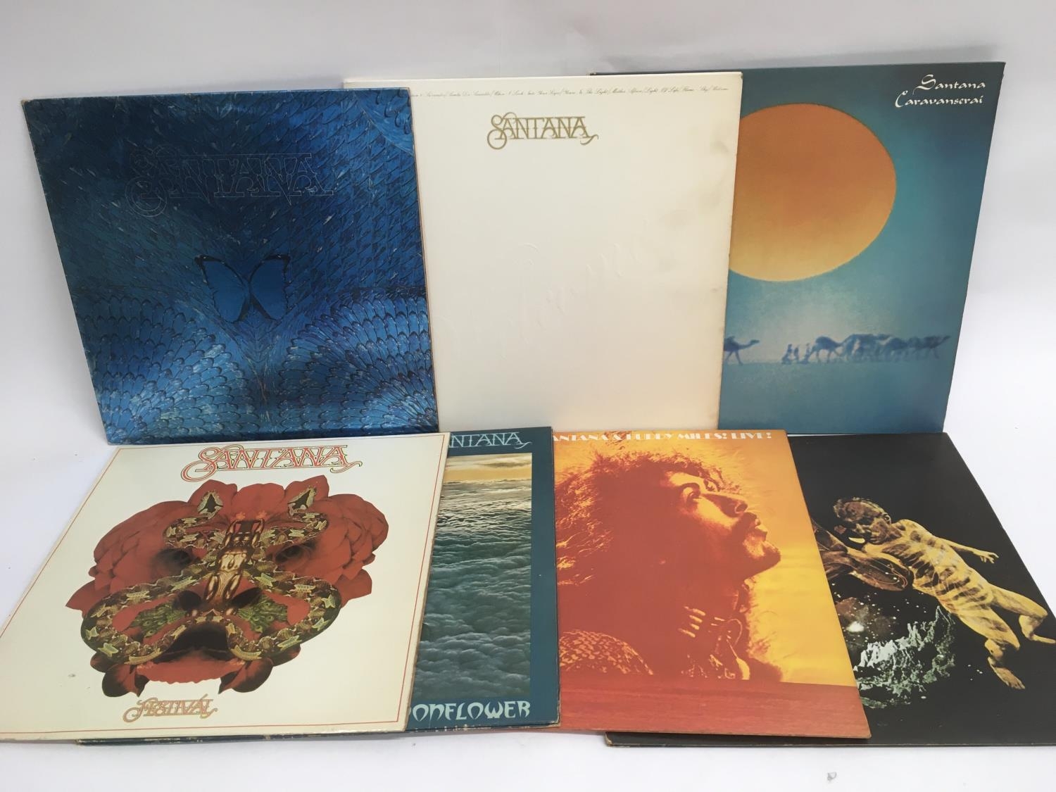 Seven Santana LPs comprising 'Welcome', 'Moonflower', 'Festival' and others.