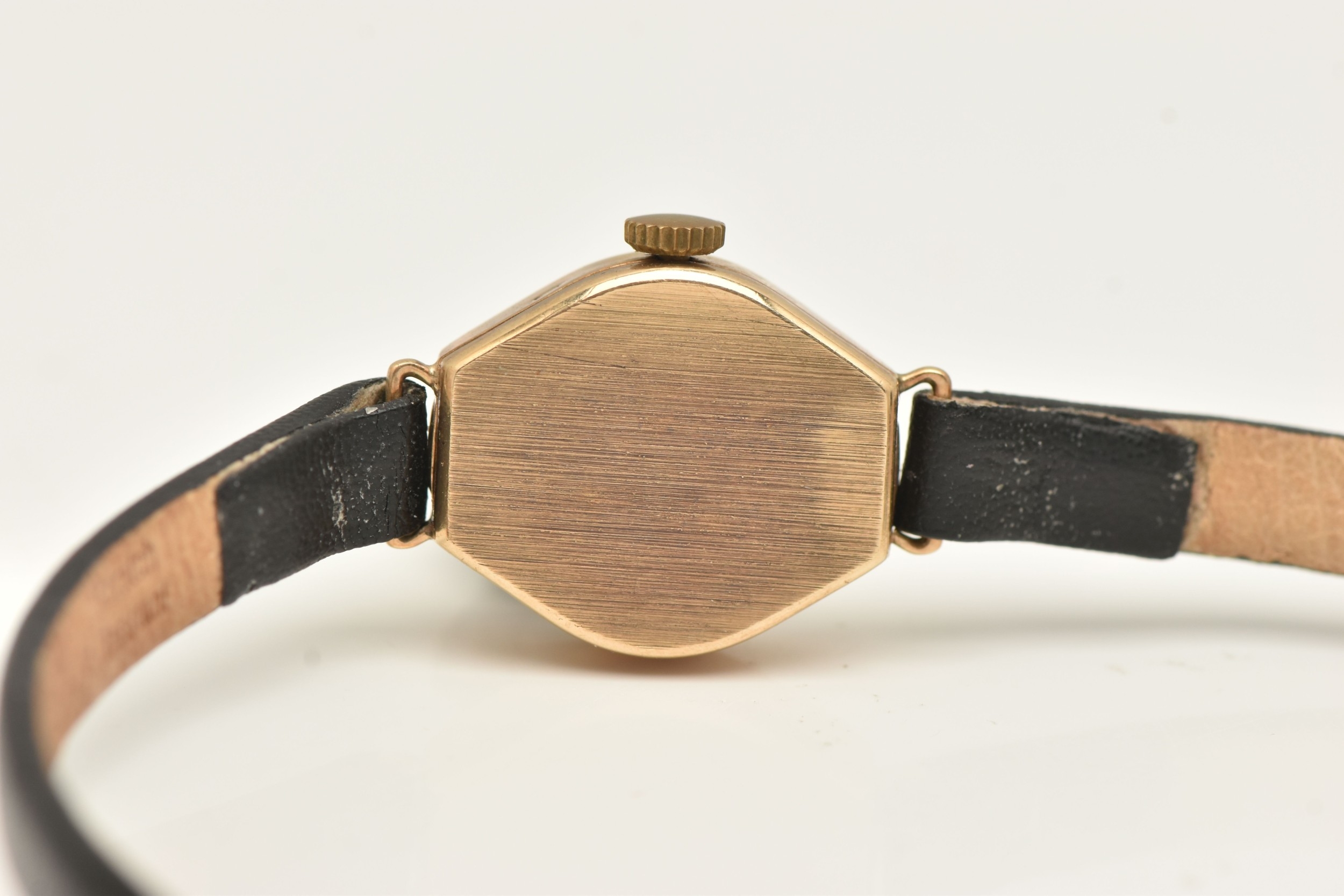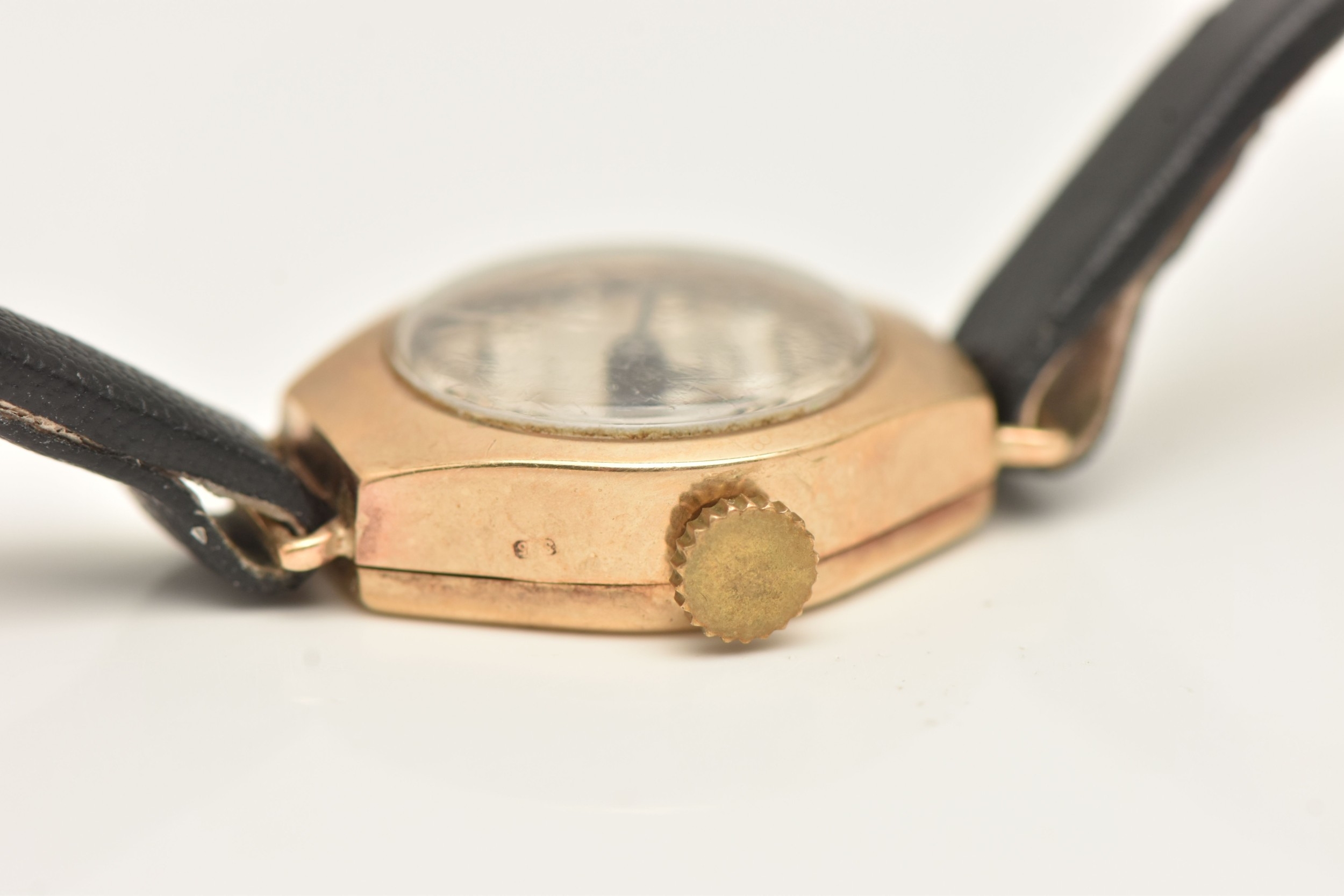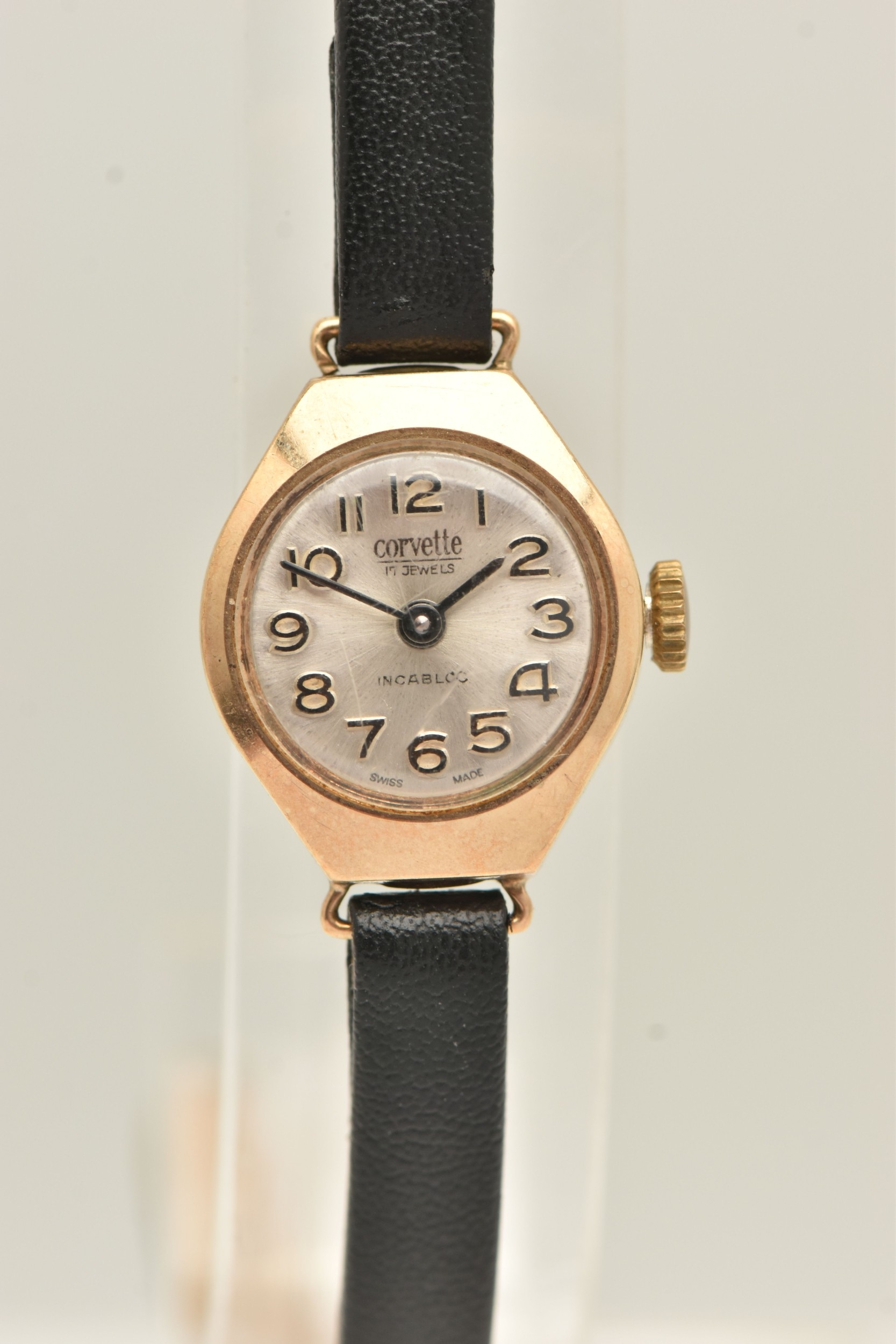A 9CT YELLOW GOLD LADIES WRISTWATCH, hand wound movement, round dial signed 'Corvette', yellow gold case, approximate case width 16mm, inside case back hallmarked 9ct Birmingham, approximate gross weight 1.3 grams, (condition report: watch winds but not running, we cannot guarantee the working condition of the watch)