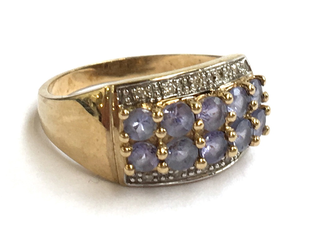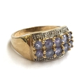 A 9ct gold ring set with purple stones and zircons, 3.8g