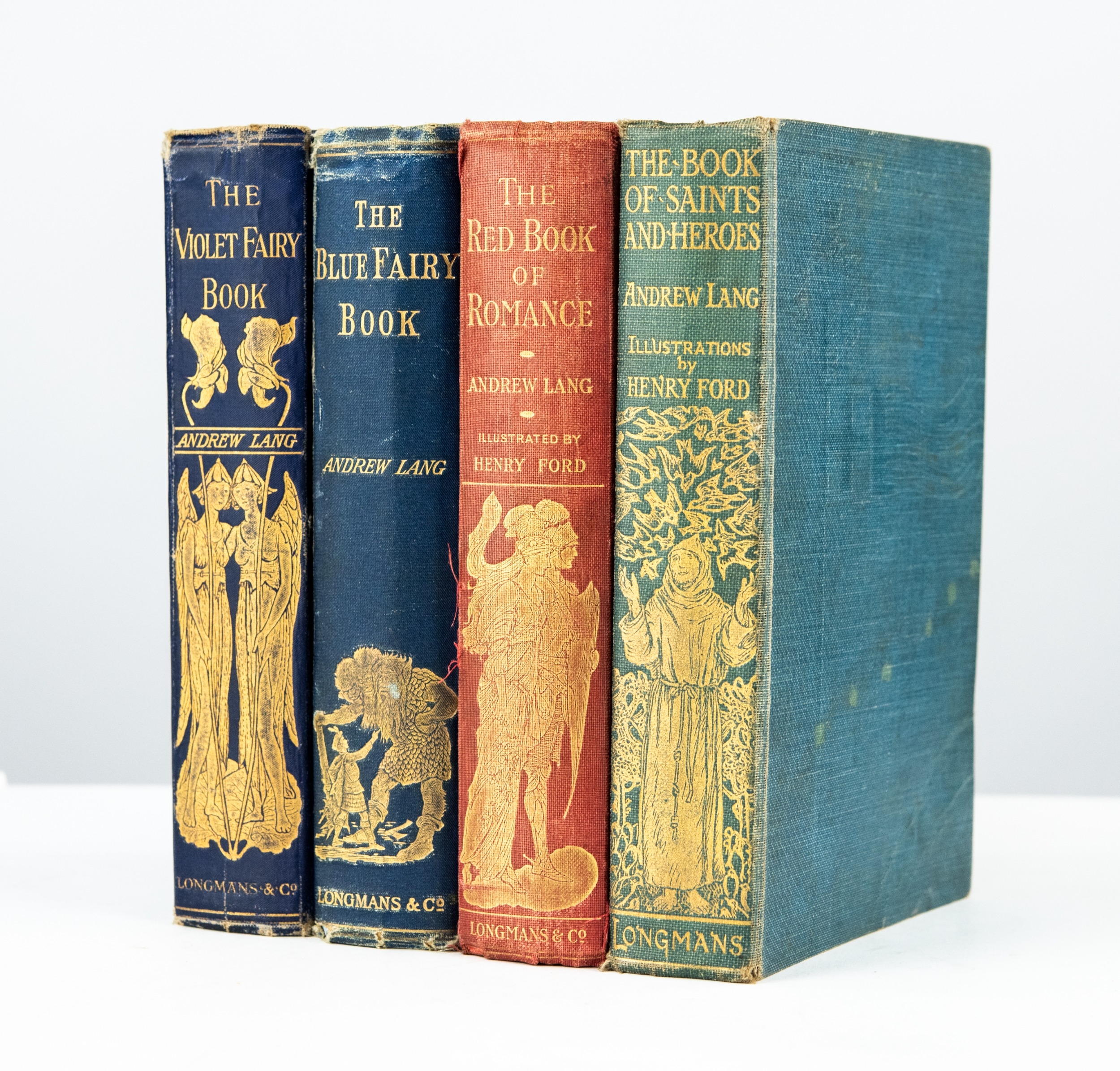 Andrew Lang - The Blue Fairy Book, published Longmans, Green and Co, 1909 rpt, bound in original publisher’s blue cloth with gilt decoration. Andrew Lang - The Violet Fairy Book, published Longmans, Green and Co, 1907 rpt, New Impression, bound in original publisher’s blue cloth with gilt decoration. Together with TWO further Andrew Lang titles. (4)