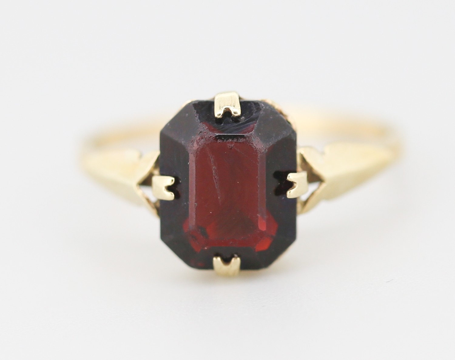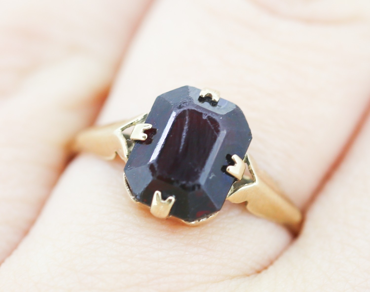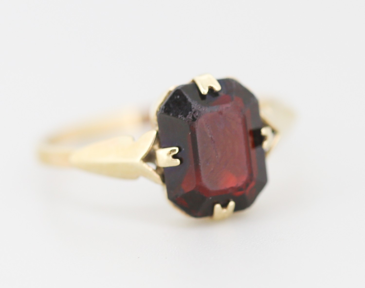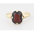 Red Garnet Set Single Stone Ring Mounted in 9 Carat Yellow Gold Ring Size P