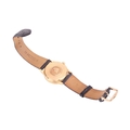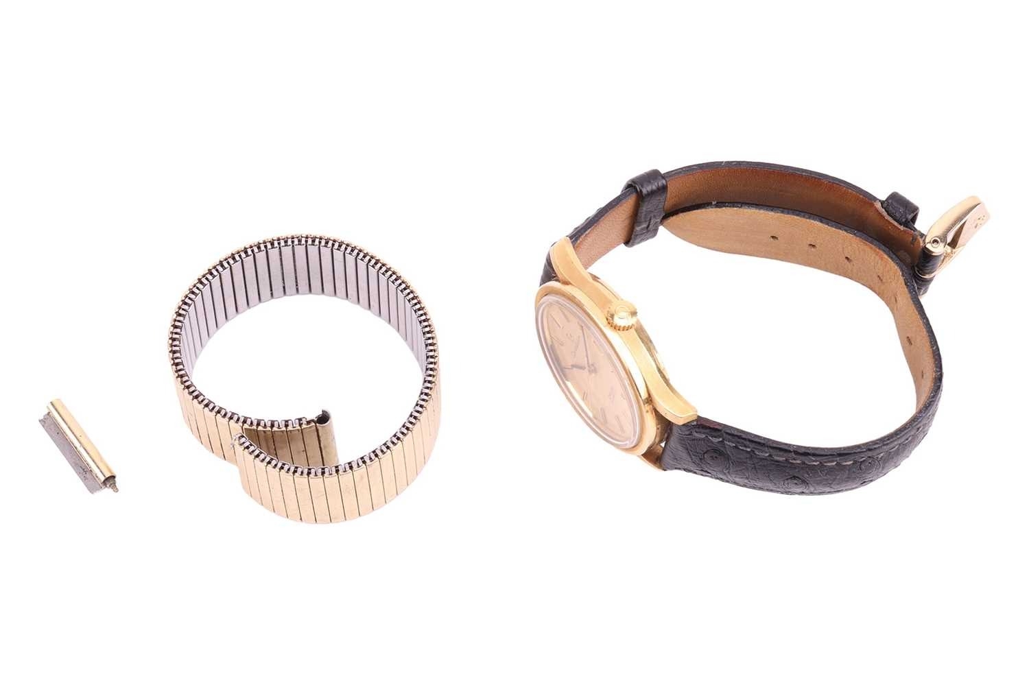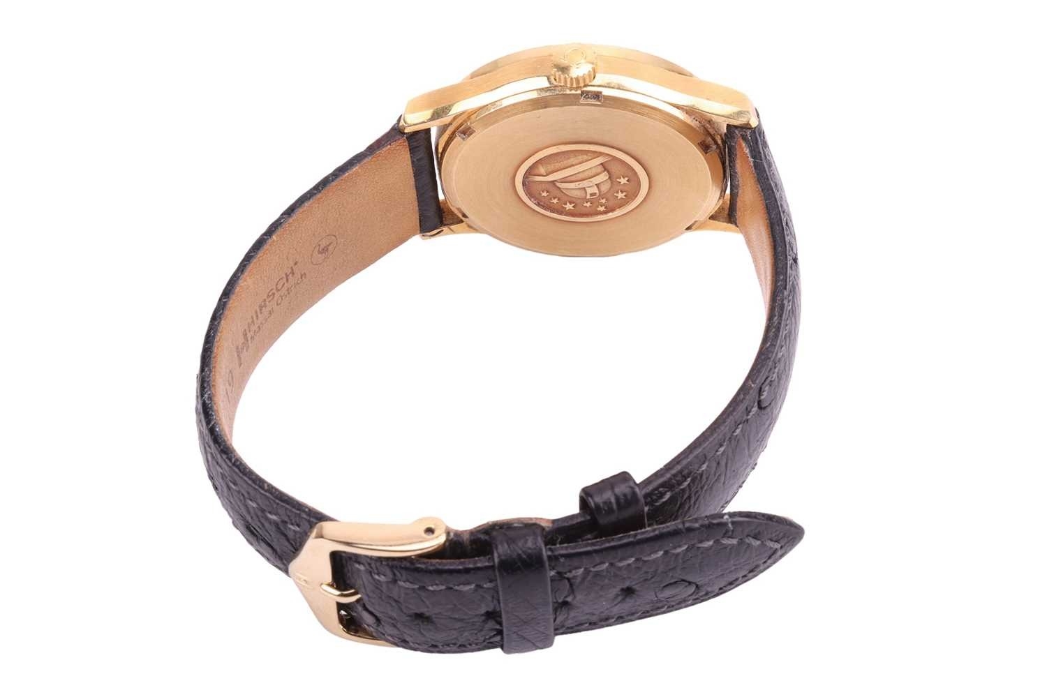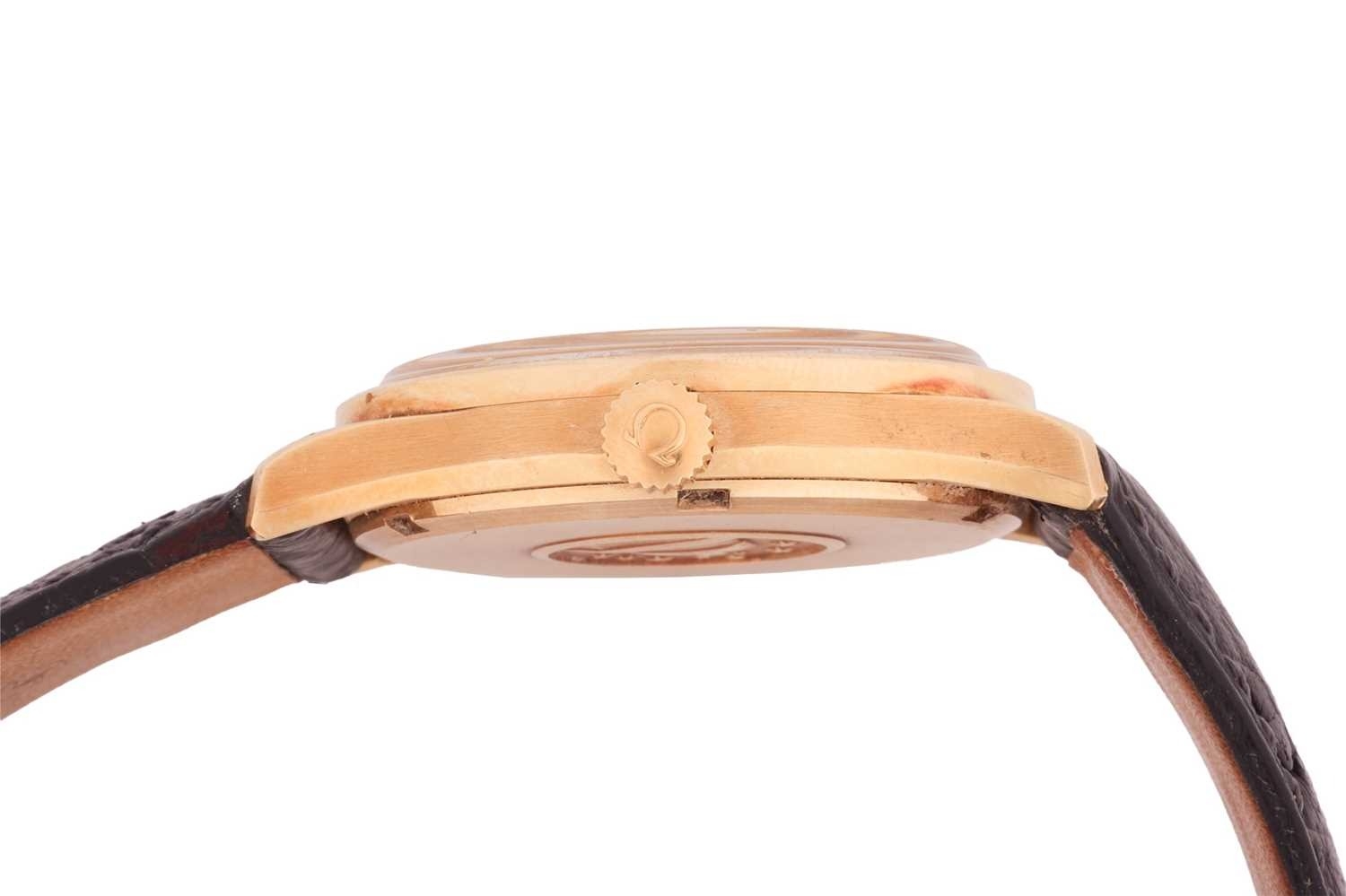 An Omega Constellation Automatic in 18ct gold dress watch. Model: 168.033 Serial: 29002067 Year: 1969 Case Material: 18ct gold Case diameter: 33mm Case back: Observatory Dial: Gold Numerals: Baton Movement: Automatic Calibre: 1002 Functions: Date Strap: Black leather third party Buckle: pin - Thirparty Length of bracelet: Box: No Papers: No The watch appears to be in good working order, no long-term tests have been performed and accuracy cannot be guaranteed, a full service is advised on all watches and pocket watches once purchased. Surface scratches & wear consistent with age The online condition report may not mention mechanical replacements or imperfections to the movement, case, dial, pendulum, separate base(s) or dome. Watches with water-resistant cases may have been opened to examine movements, but no warranties are given regarding their water resistance. It is also important to note that we cannot guarantee the authenticity or originality of individual components, such as wheels, hands, crowns, crystals, screws, bracelets, and wrist bands, since subsequent repairs and restoration may have changed the original components. Also, we cannot guarantee the authenticity or originality of any engraving or re-engraving on watch cases, case backs, bracelets, straps or internal movements.
