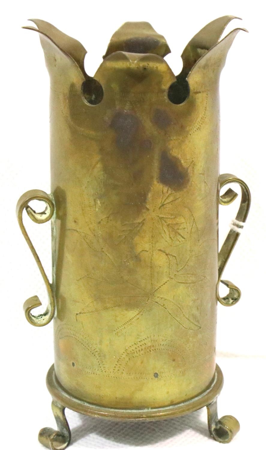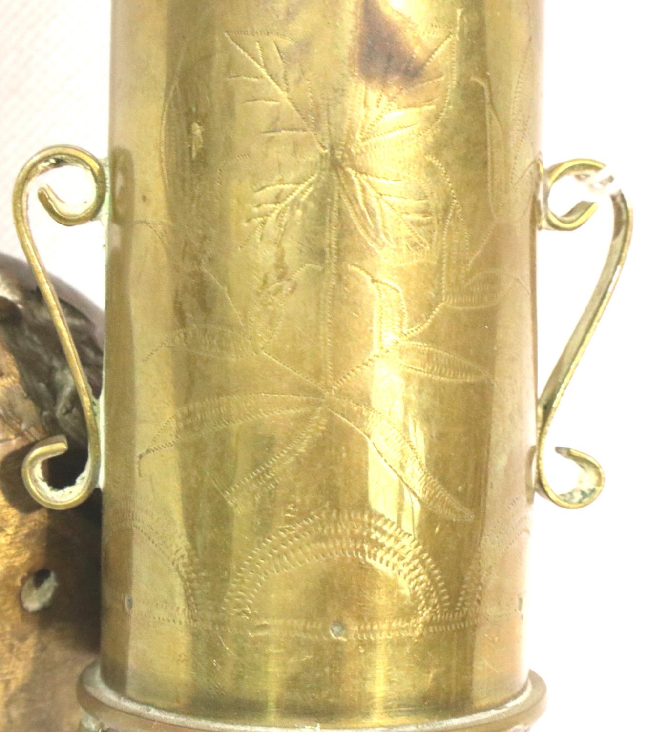 Trench Art engraved vase 37mm Hotchkiss shell case with additions. P&P Group 1 (£14+VAT for the first lot and £1+VAT for subsequent lots)