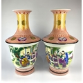 A pair of modern decorative Japanese porcelain vases with polychrome figurative decoration and four character mark to base 62cm high