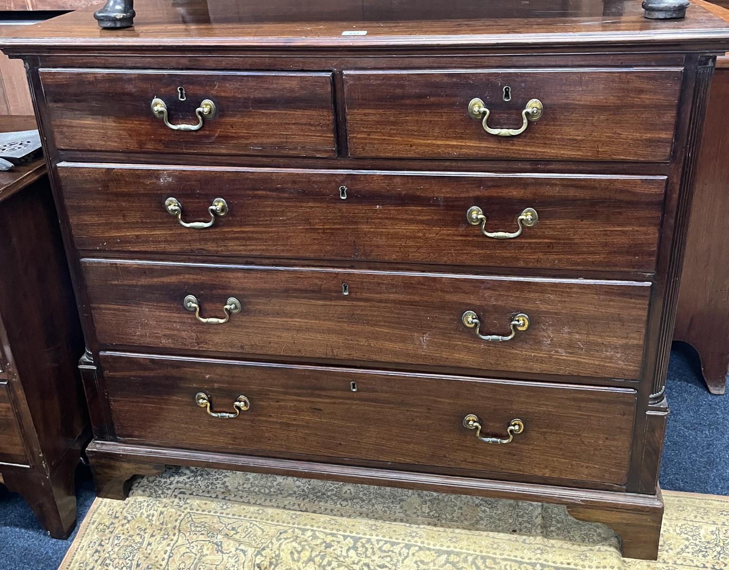 Victorian mahogany chest of two short over three long graduated drawers, raised on bracket supports.