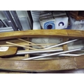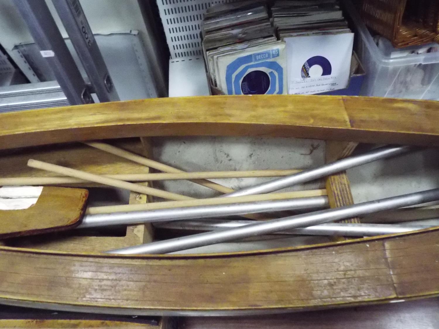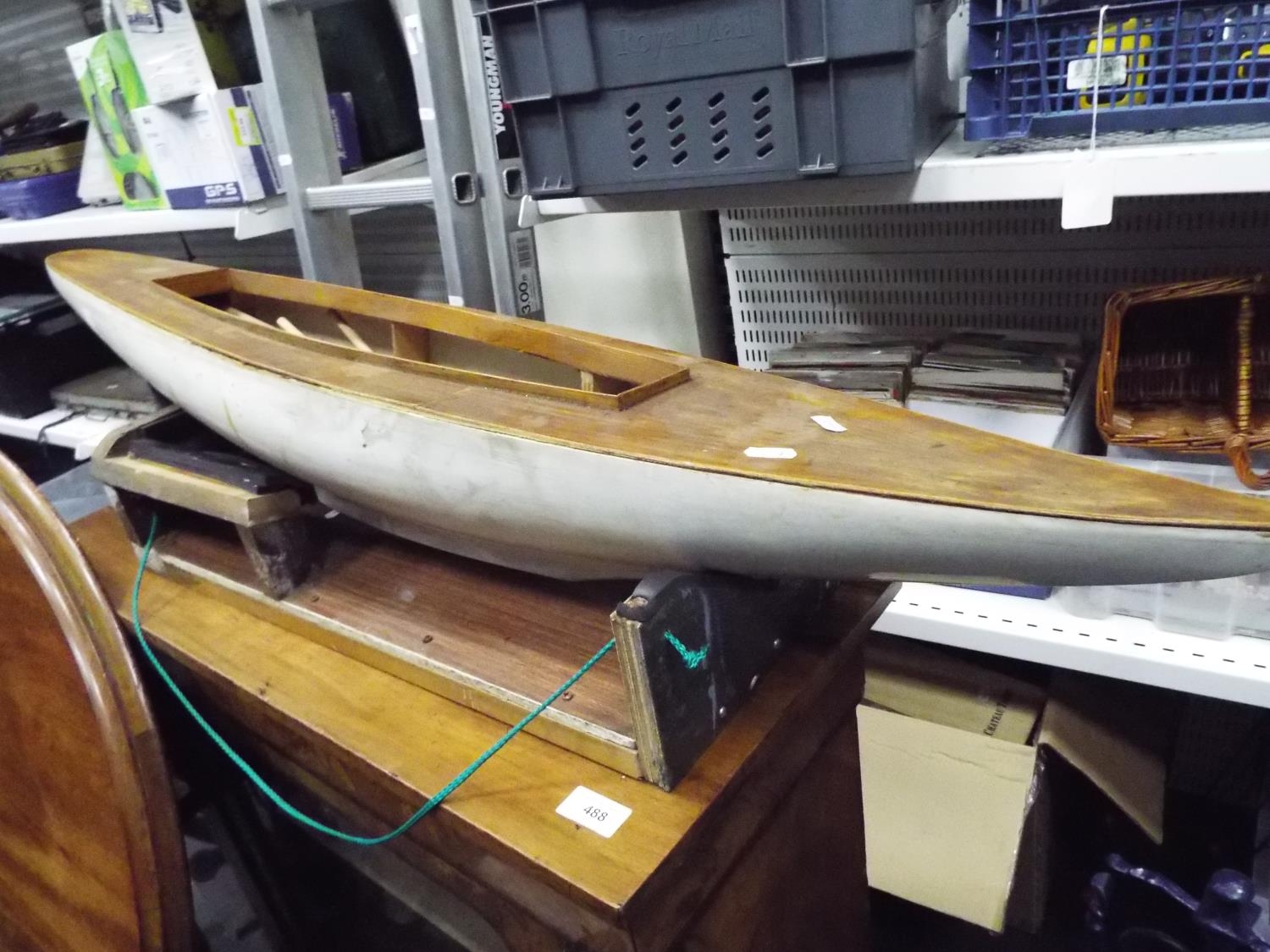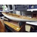 Wooden partly constructed model of a sailboat. 42 inches long with cradle