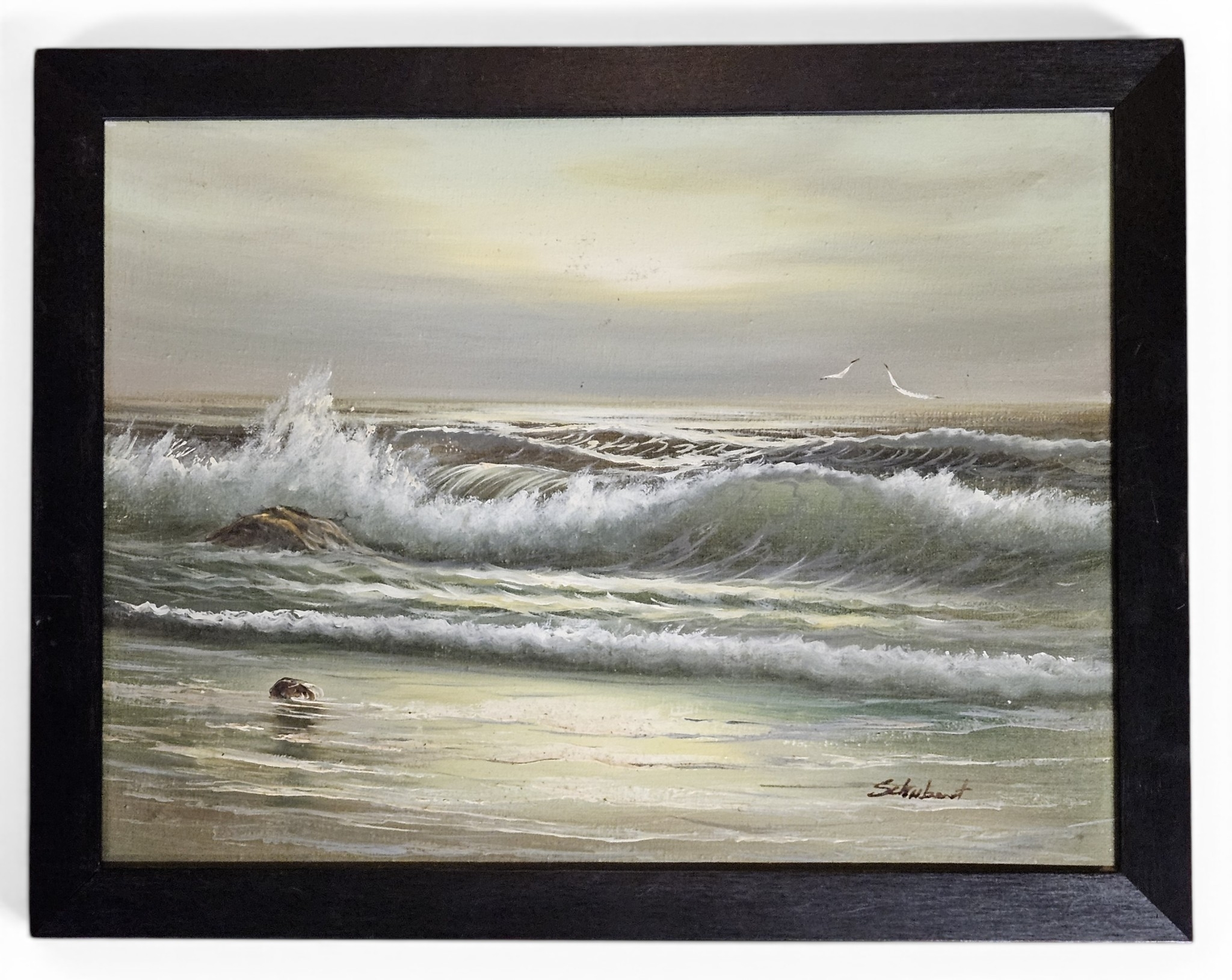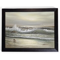 A 20th Century Oil On Canvas of a seashore with waves breaking on rocks, signed indistinctly LR. 29 x 39 cm approx.