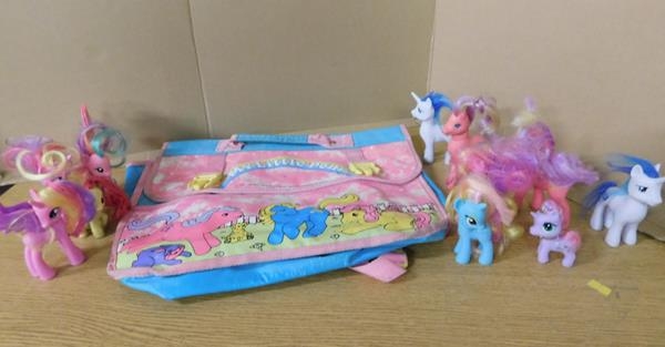 1980/1990 My Little Pony back pack + 11x 2004 My Little Pony figures