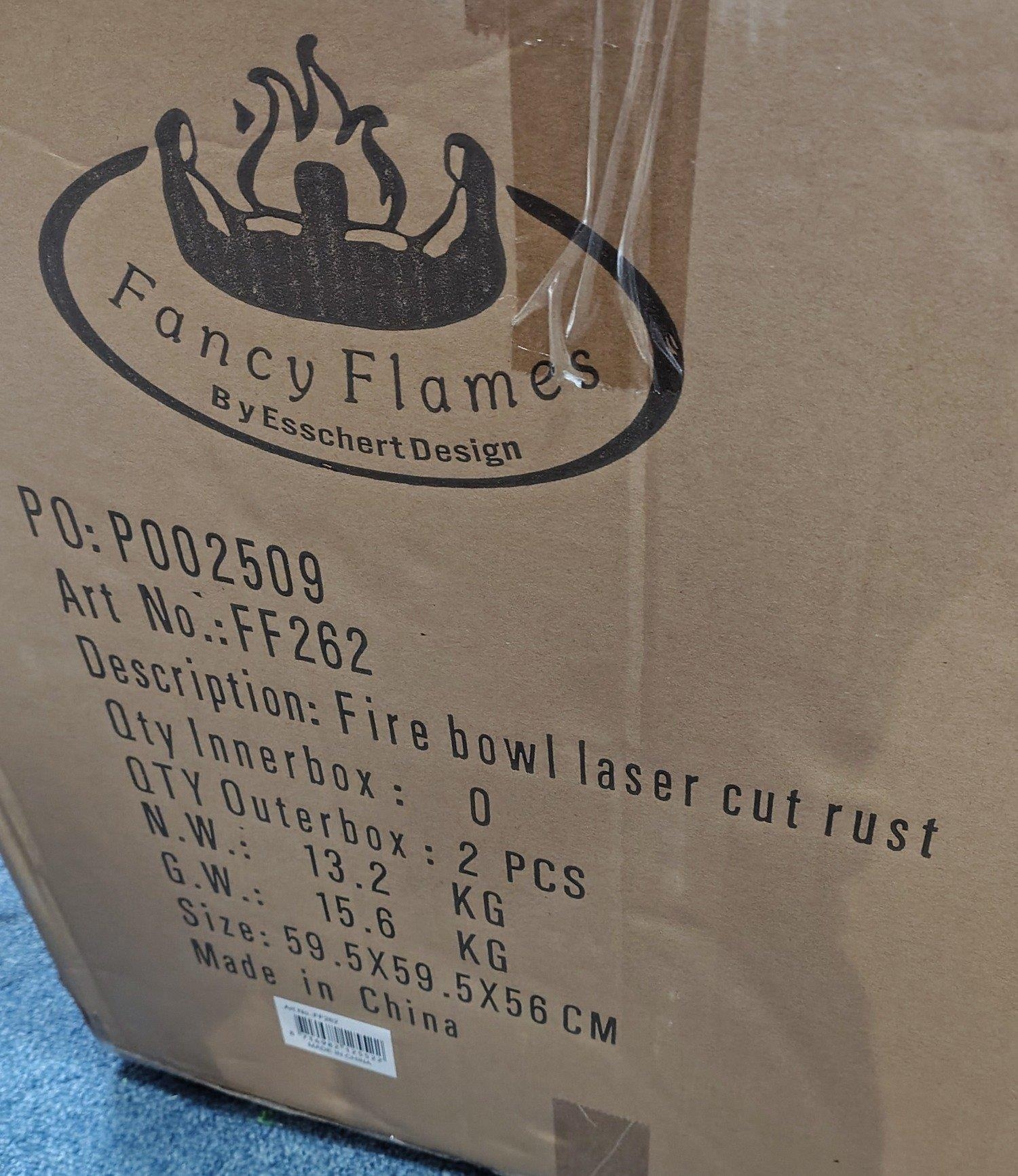 XMAS GIFTING IDEAS! Fancy Flame ESSHART DESIGN new in the box FIRE PIT laser cut rust effect. 60cm approx - rrp £250